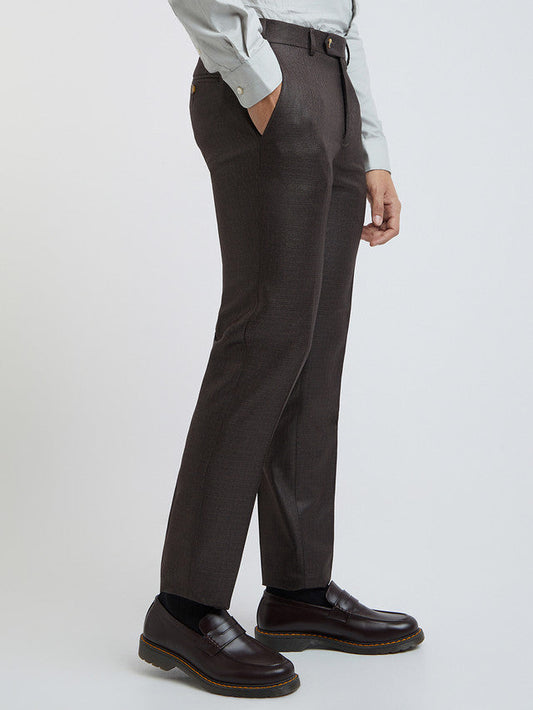 Men Brown Super Slim Fit Solid Terylene Blend Trouser