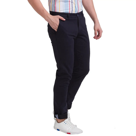 Men Blue Neo Classic Fit Solid Cotton Blend Trouser