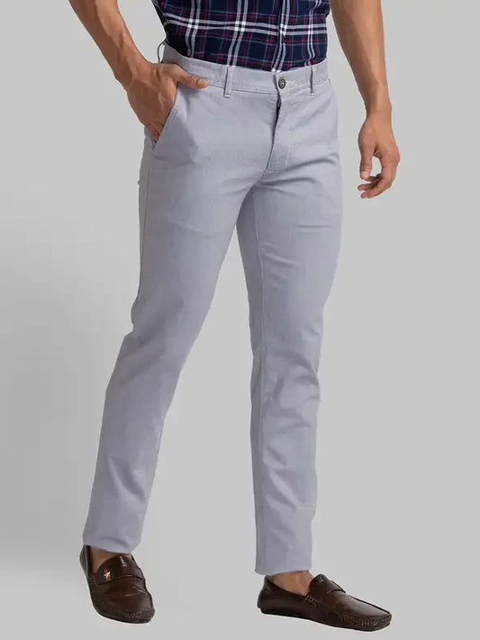 Men Grey Lrt Fit Solid Cotton Blend Trouser