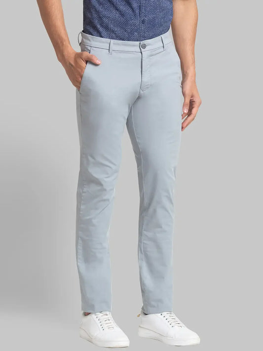 Men Grey Low Rise Tapered Fit Solid Cotton Blend Trouser