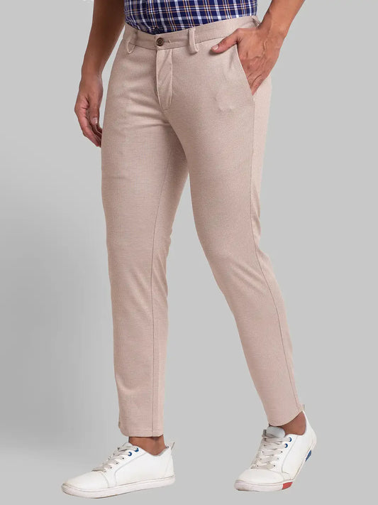 Men Khaki Lrt Fit Solid Cotton Blend Trouser