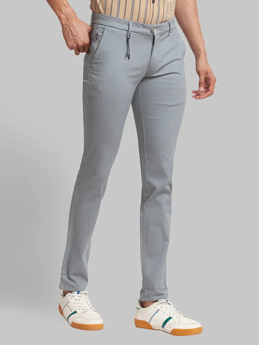 Men Grey Low Rise Tapered Fit Yarn Dyed Cotton Blend Trouser