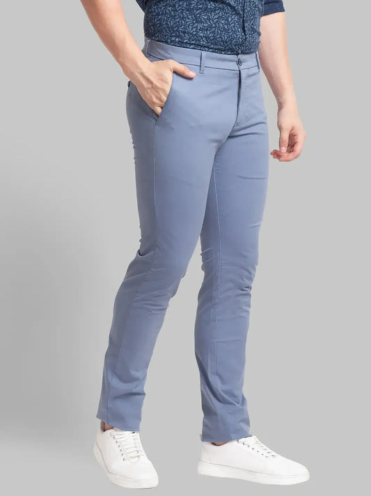 Men Grey Lrt Fit Solid Cotton Blend Trouser