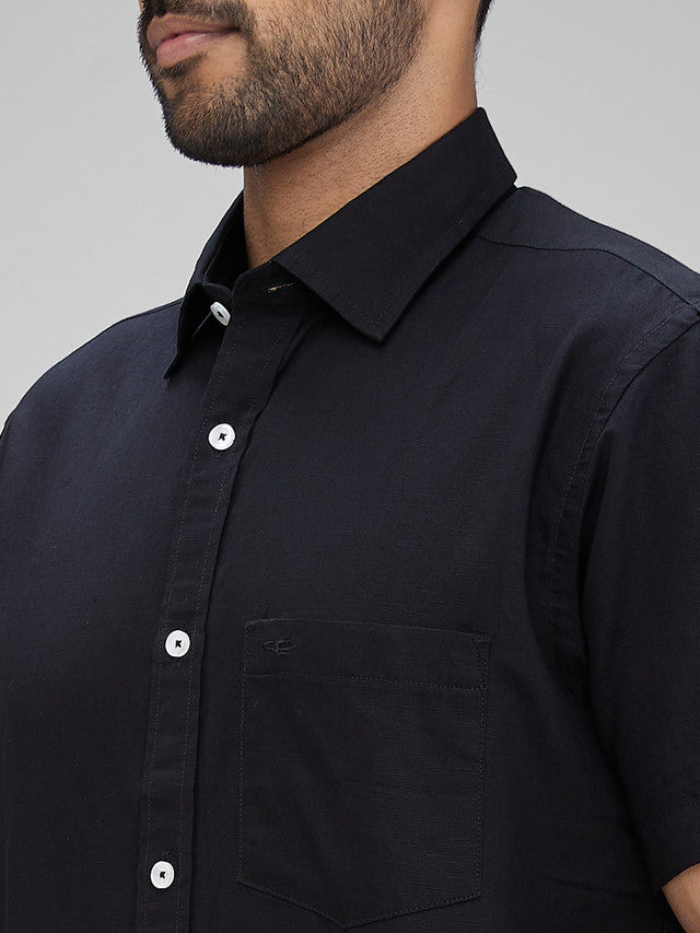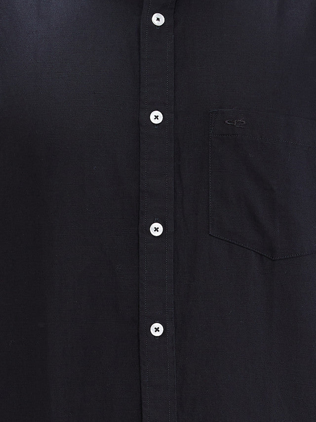 Colorplus Black Solid Piece Dyed Tailored Fit Linen Blend Casual Shirt