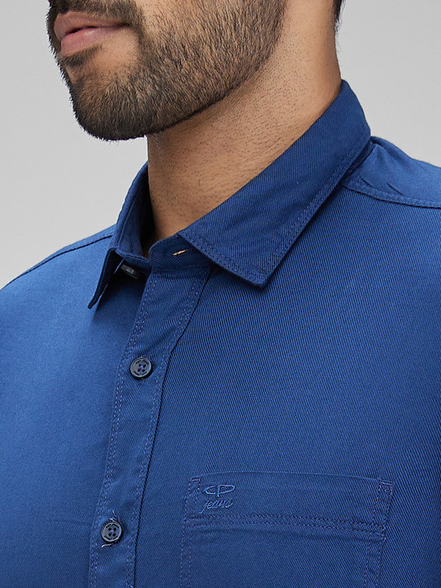 Colorplus Blue Solid Piece Dyed Slim Fit Full Sleeve Cotton Shirt