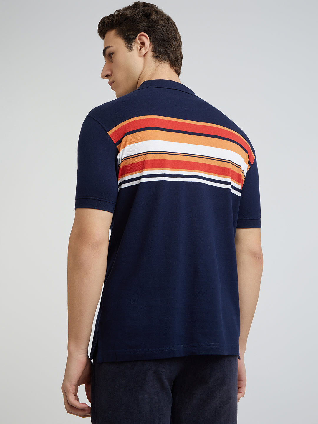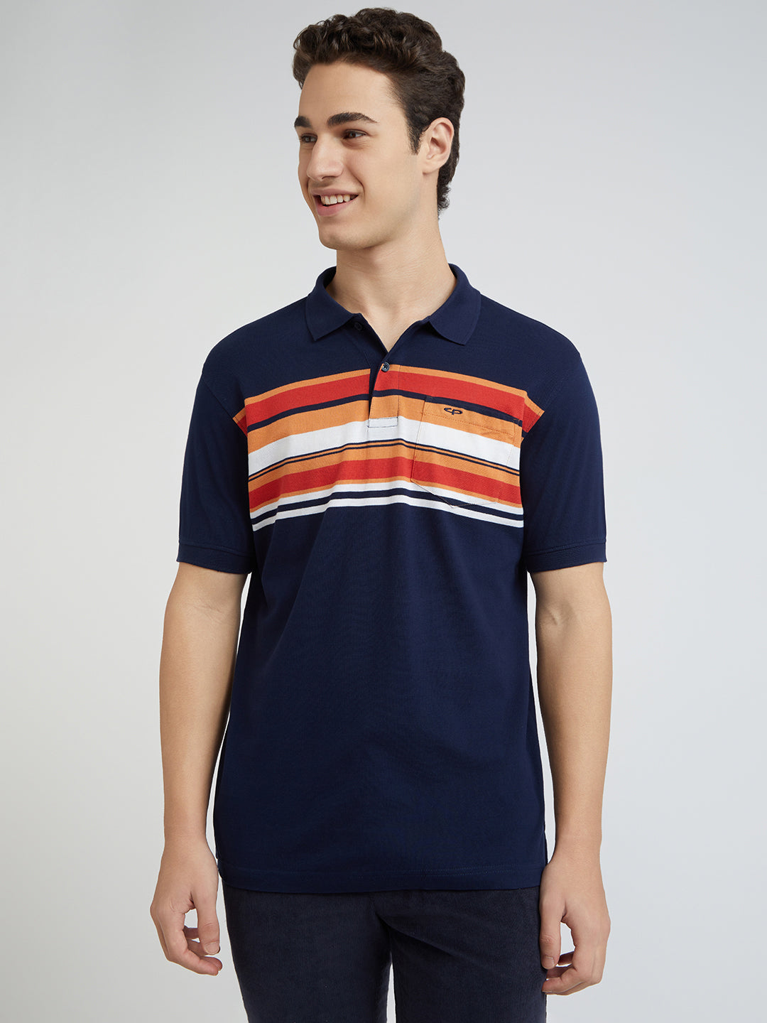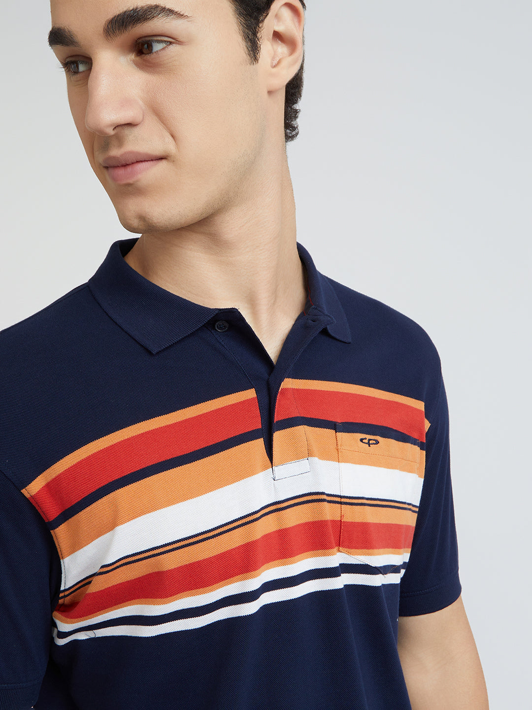 Colorplus Blue Stripe Regular Fit Cotton T-Shirt