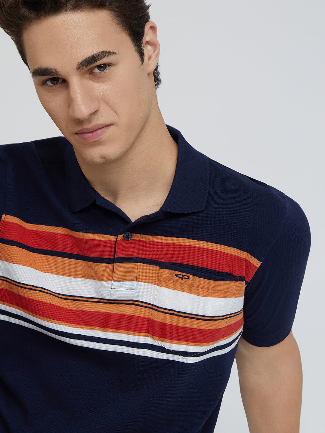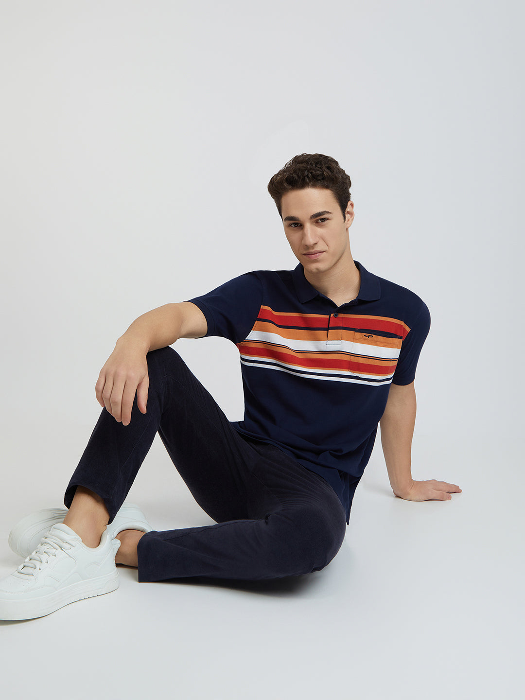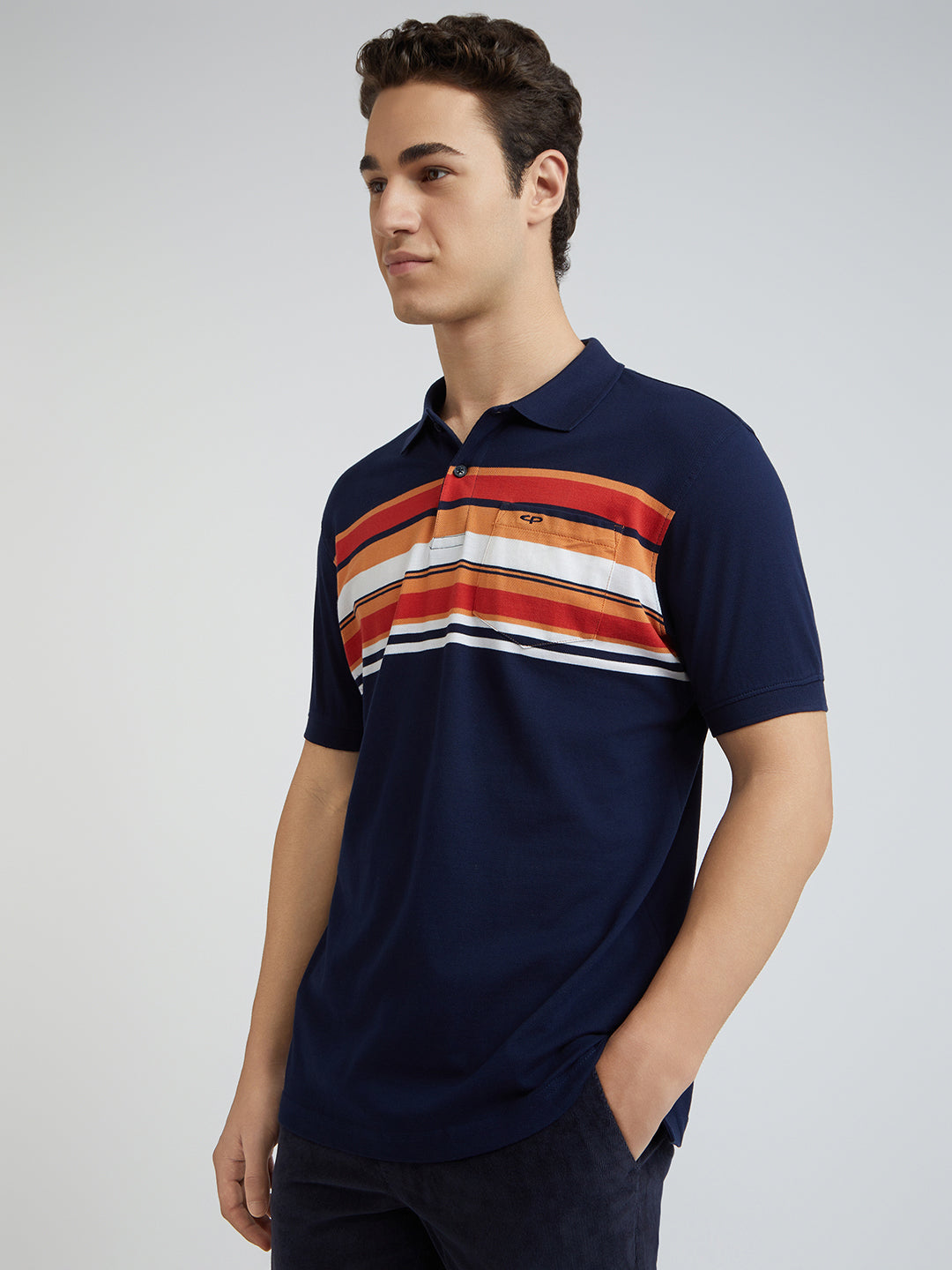 Colorplus Blue Stripe Regular Fit Cotton T-Shirt