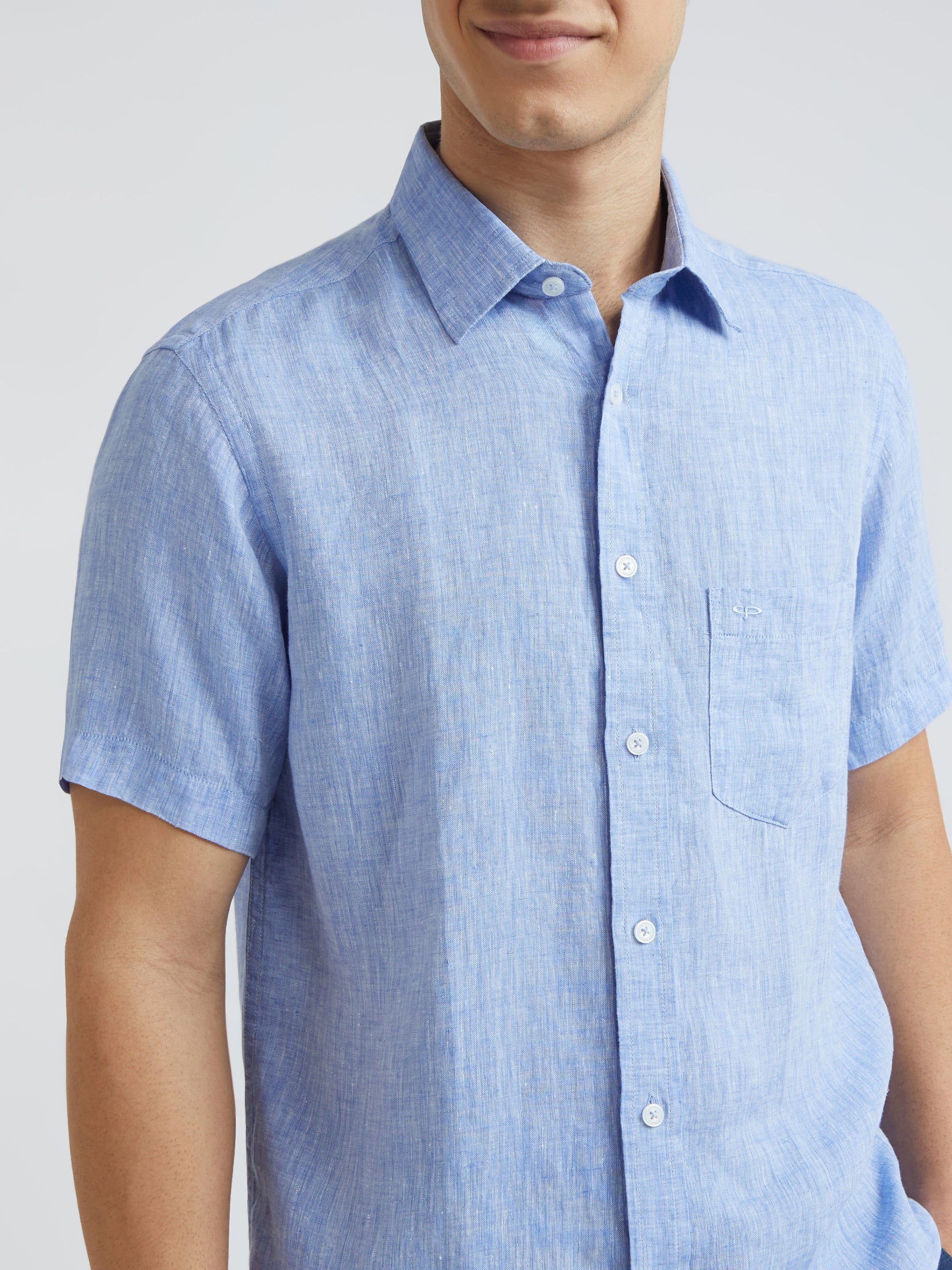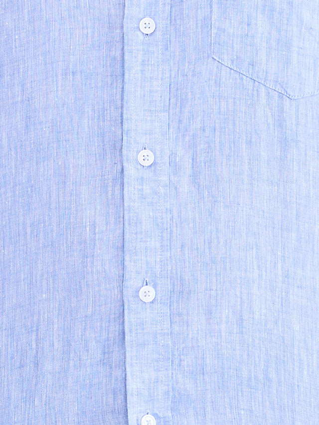 Colorplus Blue Yarn Dyed Tailored Fit Linen Casual Shirt