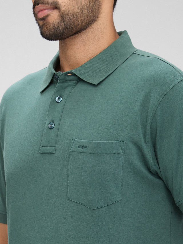 Colorplus Green Solid Regular Fit Half Sleeve Cotton T-Shirt