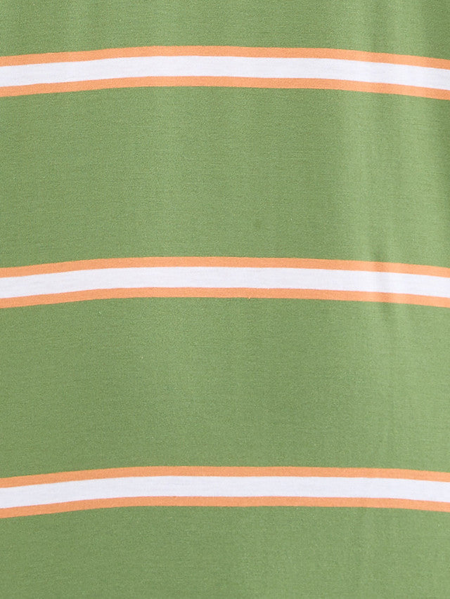 Men Green Stripe Comfort Fit Cotton T-Shirt