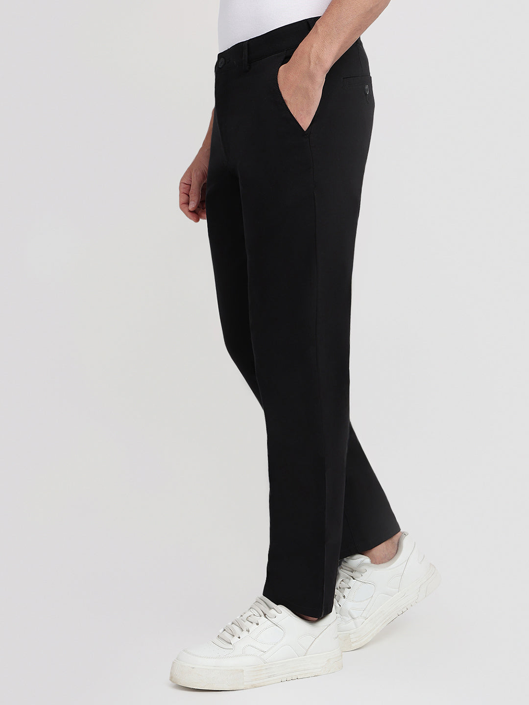 Colorplus Men Black Dobby Slim Fit Cotton Blend Trouser