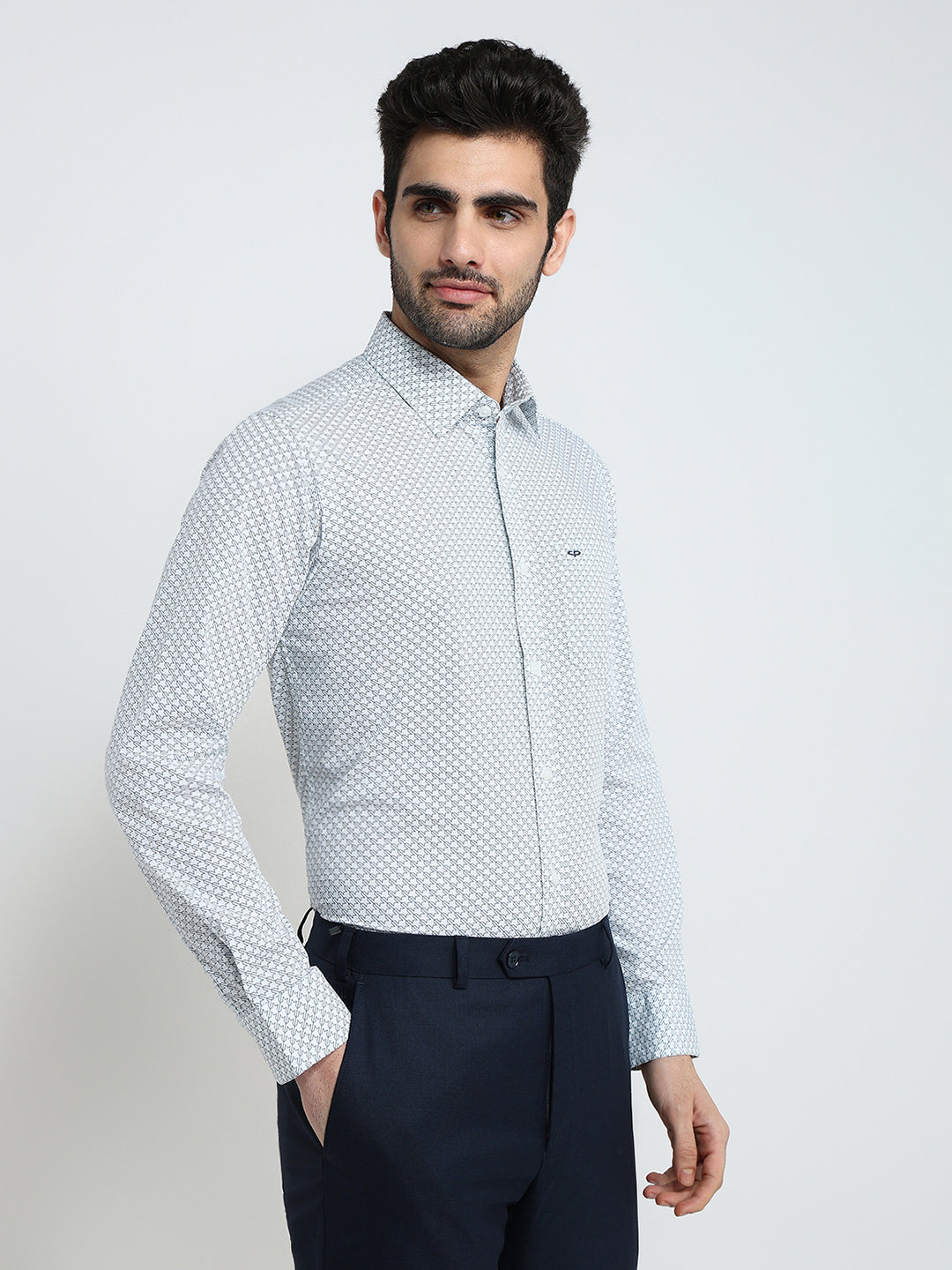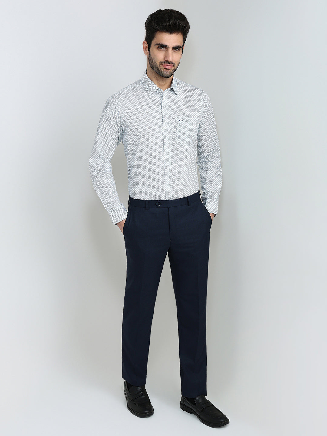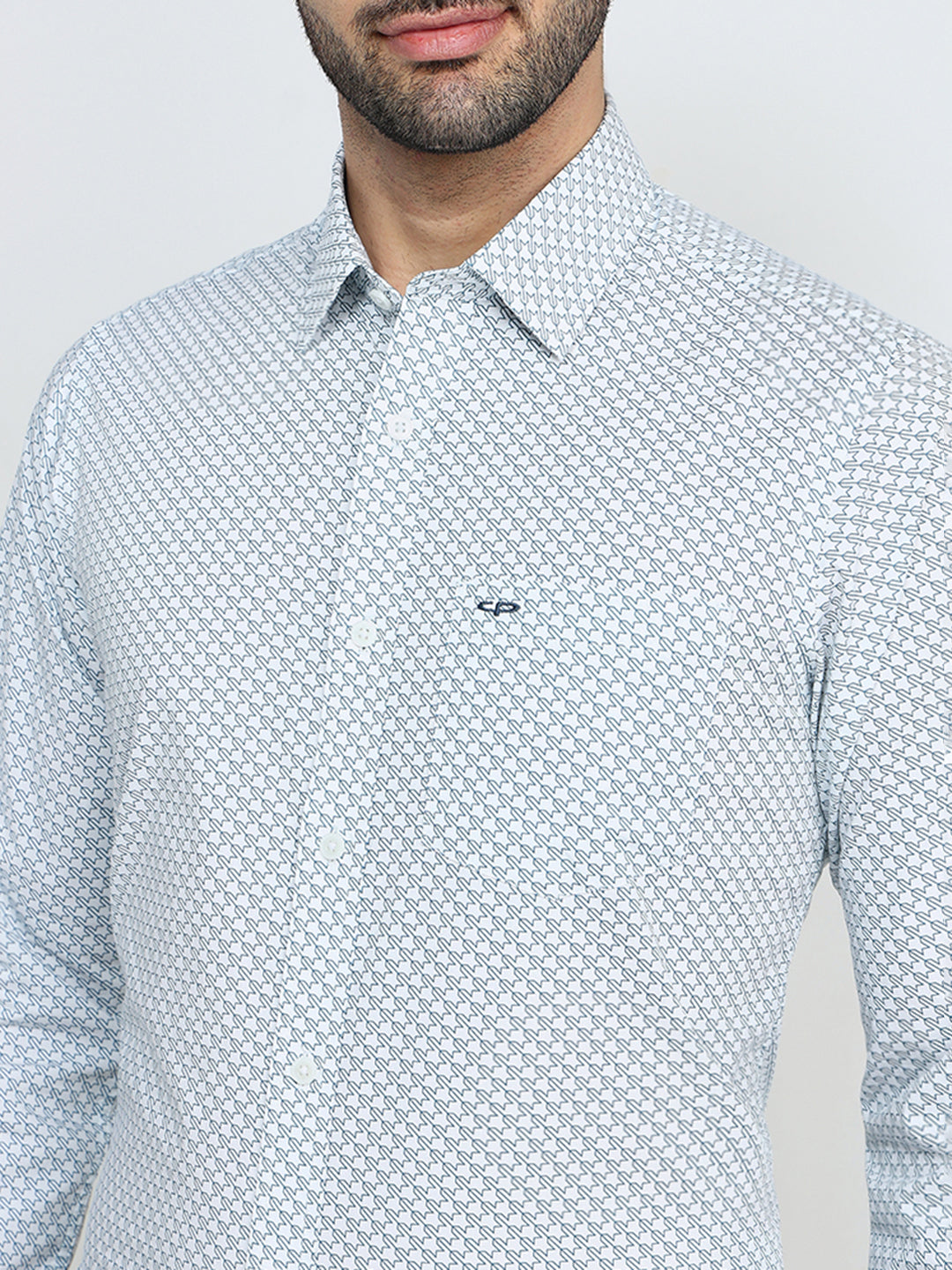 Colorplus Men Blue Printed Slim Fit Cotton Blend Full Sleeve Casual Shirt