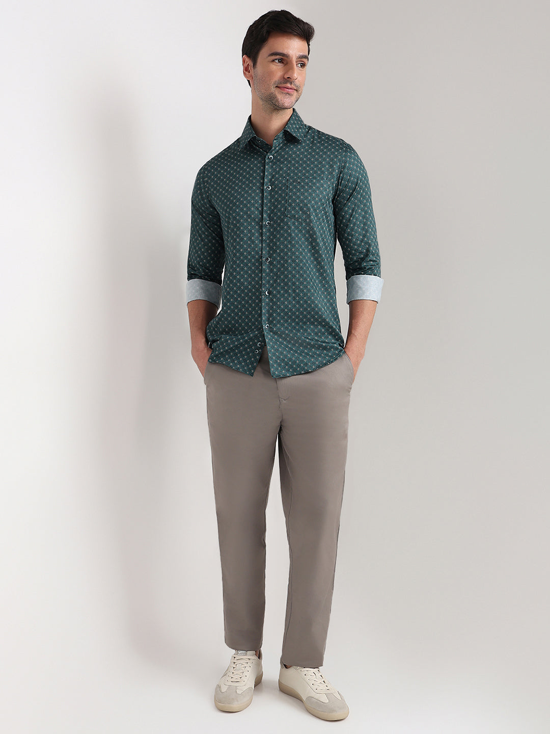 Colorplus Men Blue Printed Slim Fit Cotton Full Sleeve Casual Shirt