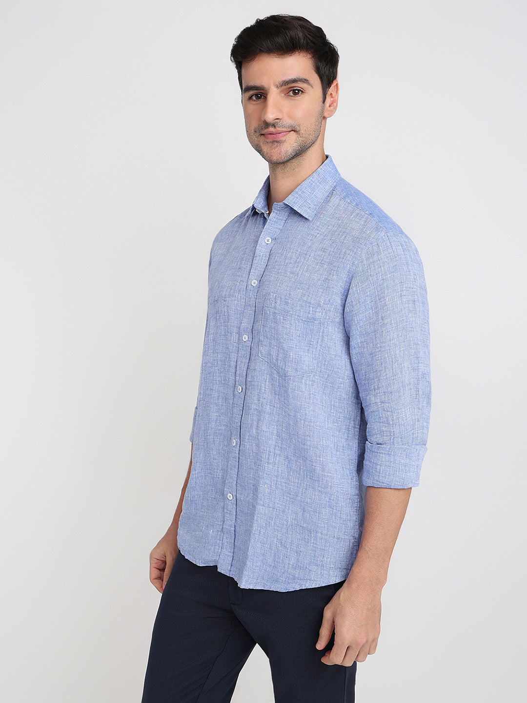 Colorplus Men Blue Solid Regular Fit Linen Full Sleeve Casual Shirt