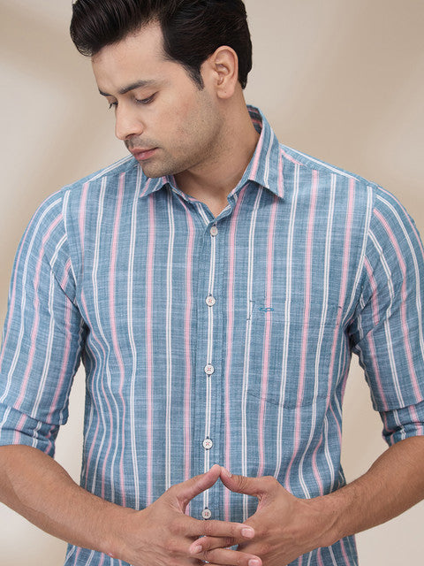 Colorplus Men Blue Stripe Regular Fit Cotton Casual Shirts