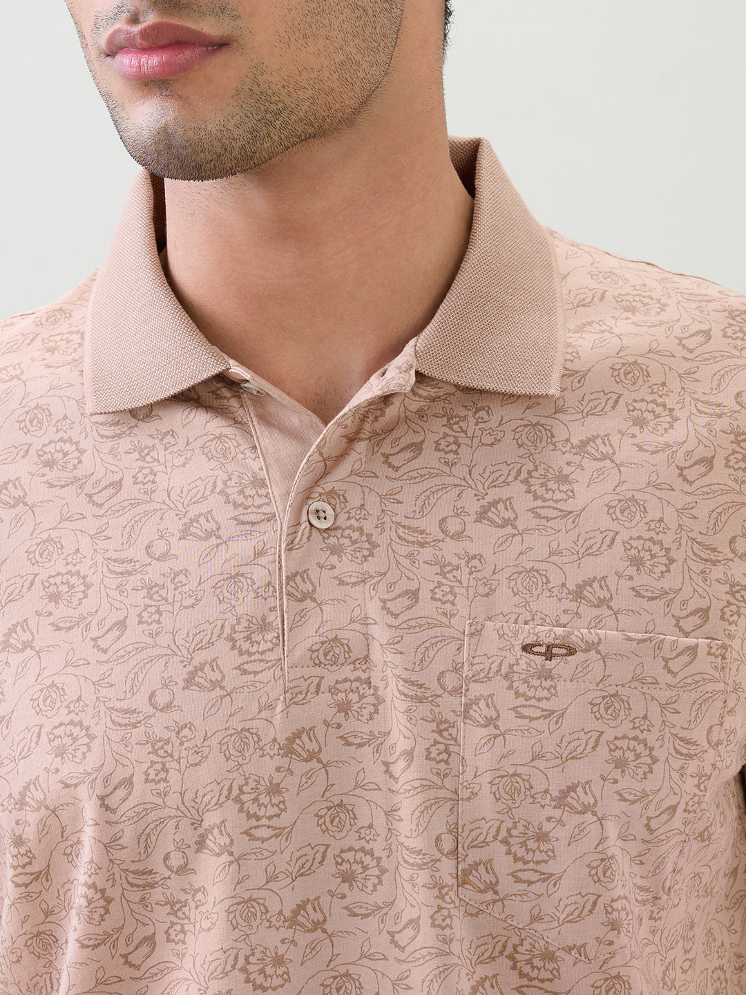 Colorplus Men Brown Printed Comfort Fit Cotton Half Sleeve T-Shirt