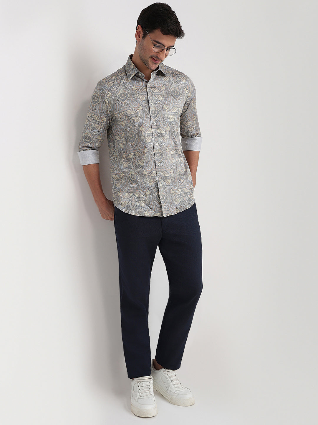 Colorplus Men Brown Printed Regular Fit Cotton Full Sleeve Casual Shirt