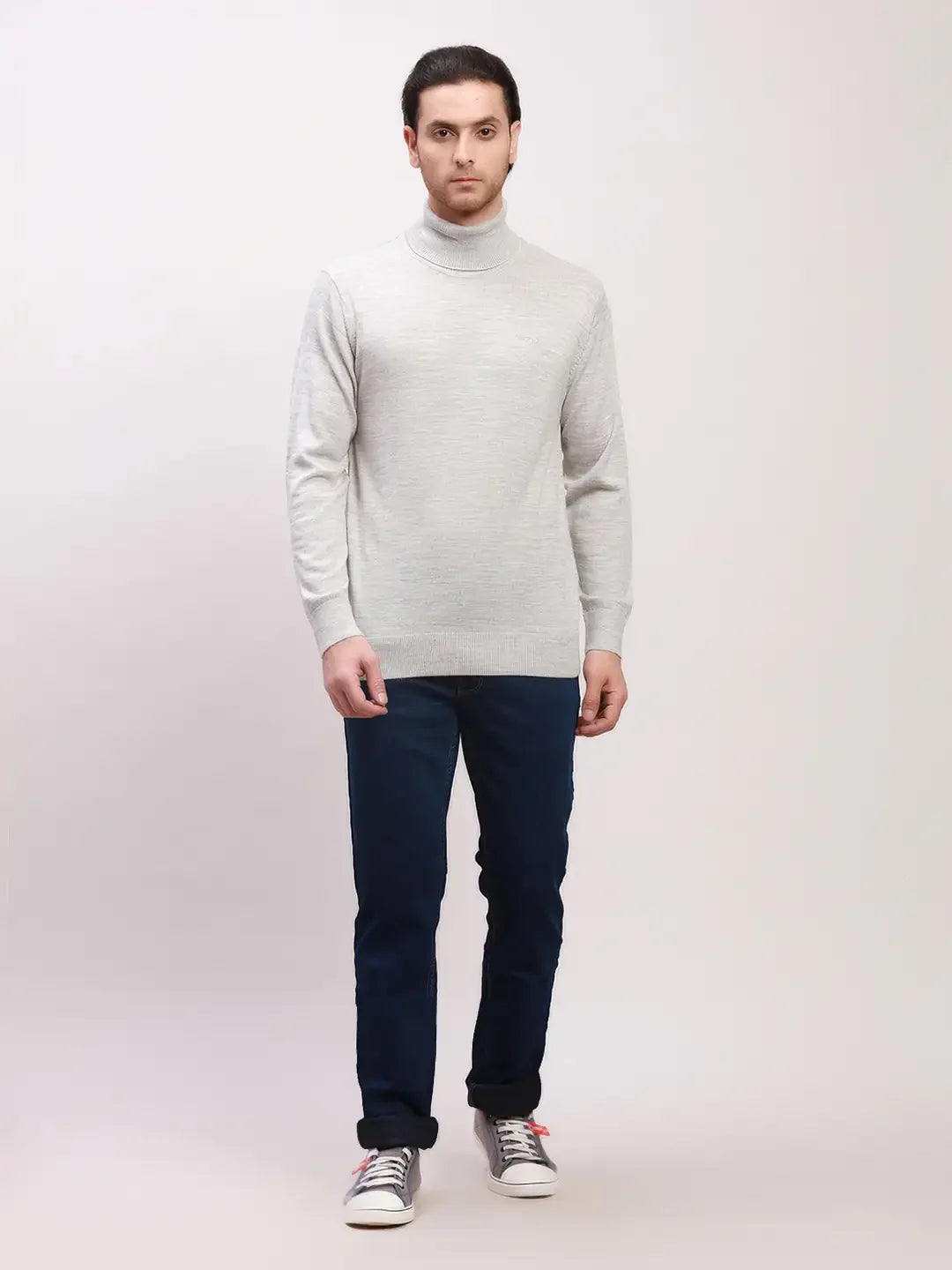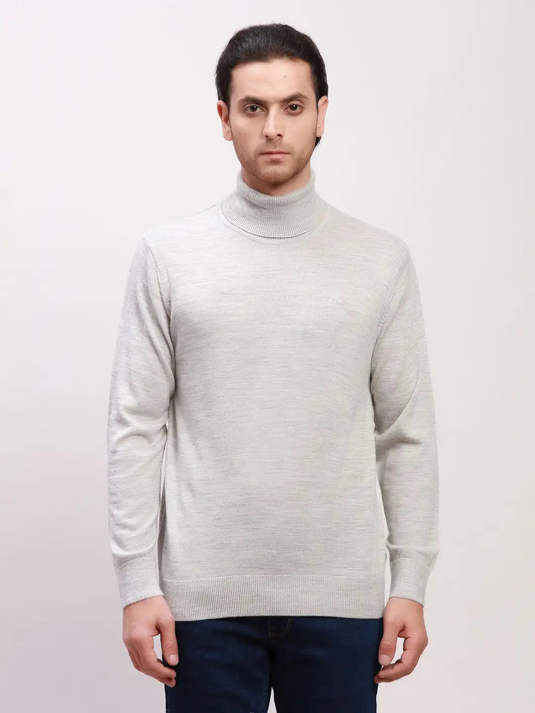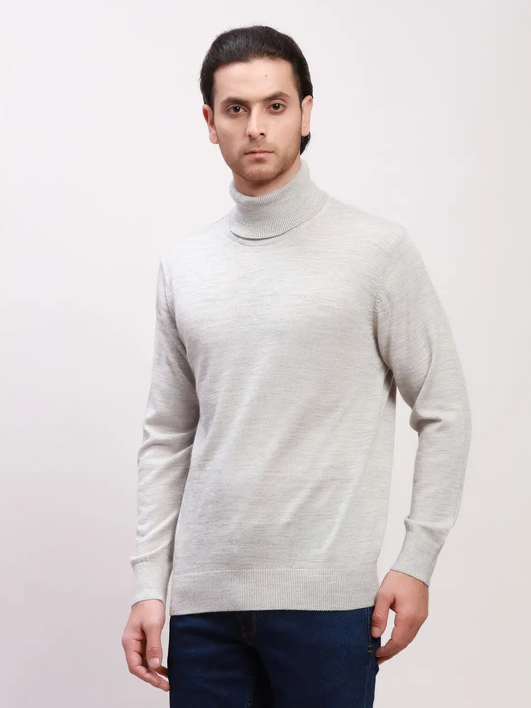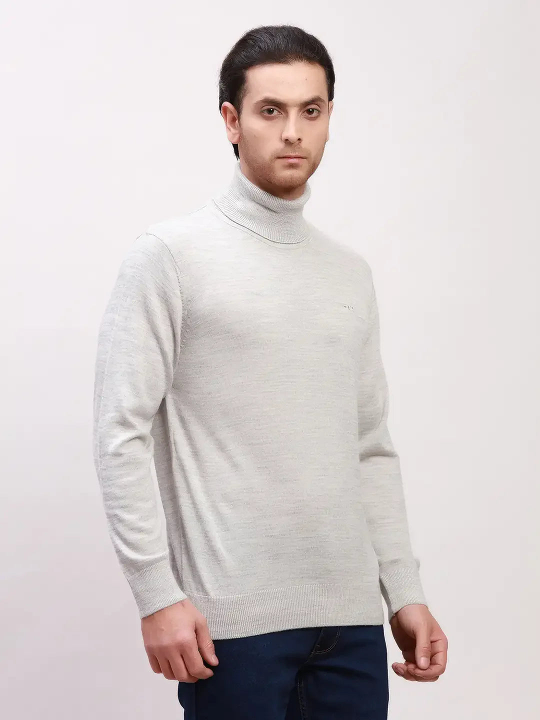 Colorplus Men Grey Solid Tailored Fit Wool Blend Full Sleeve V Neck Sweaters