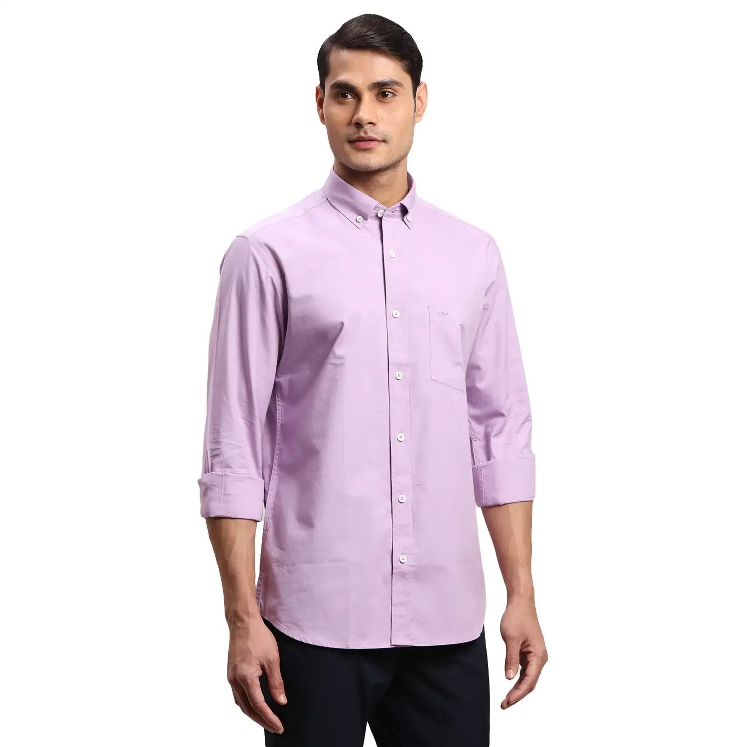 Colorplus Men Purple Warp Chambray Regular Fit Cotton Casual Shirt