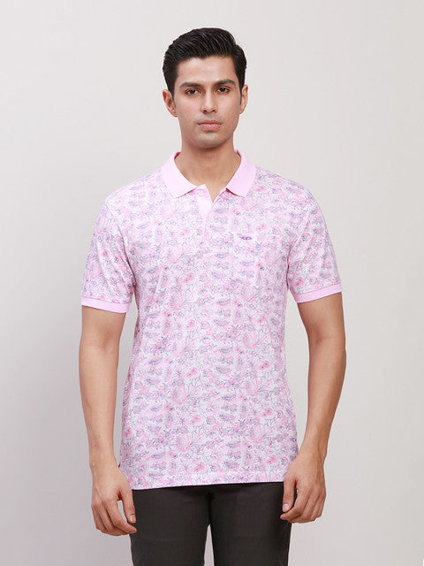 ColorPlus Men Red Tailored Fit Printed Half Sleeve T-Shirt