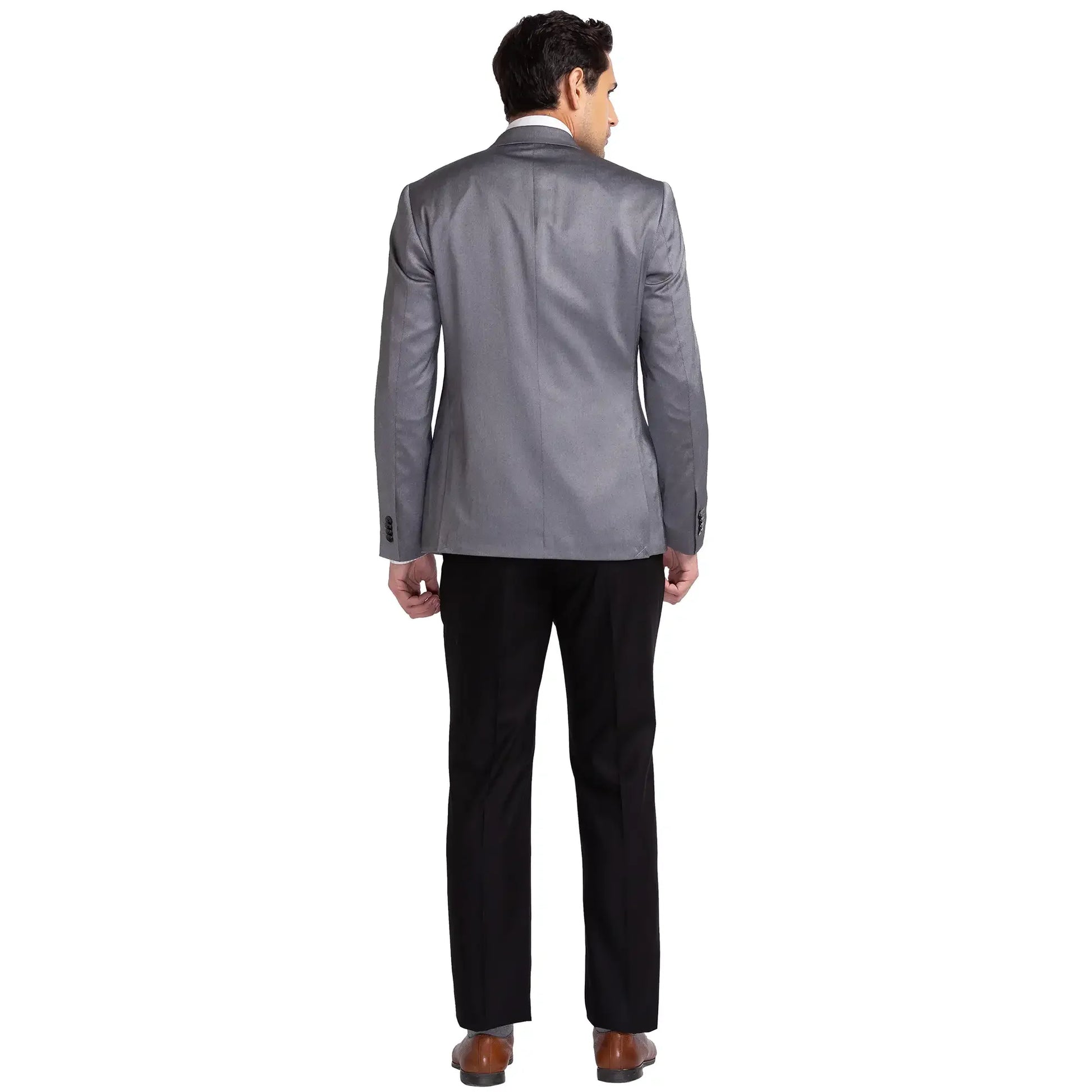 Men Black Regular Fit Structure Terylene Rayon Blend Suit