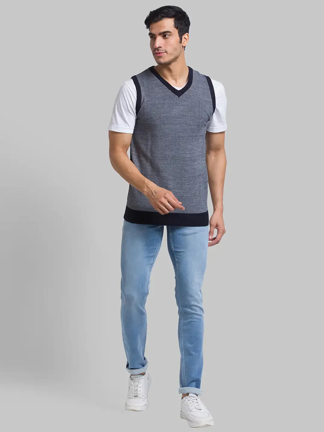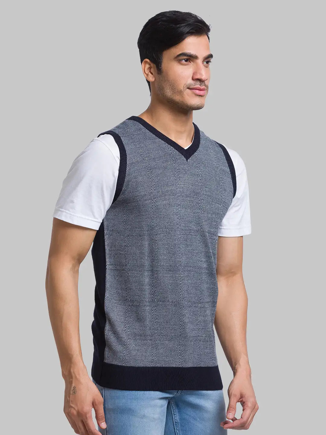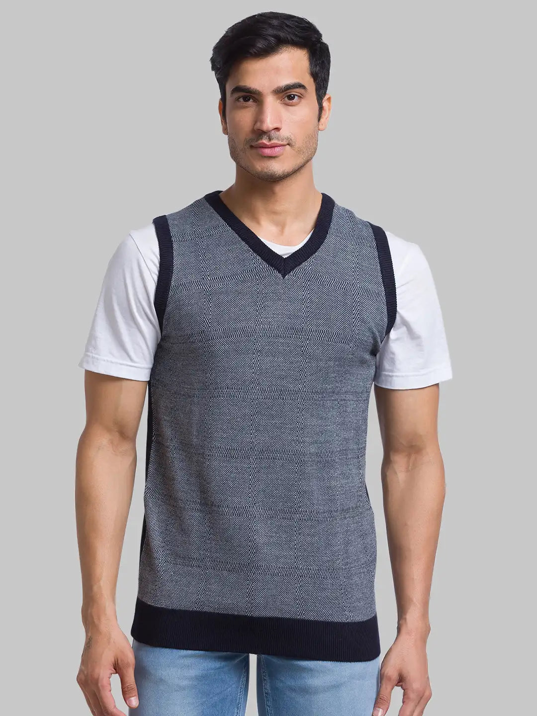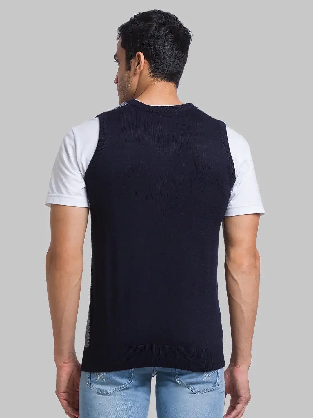Men Blue Jacquard Acrylic Blend Sleeveless Sweaters