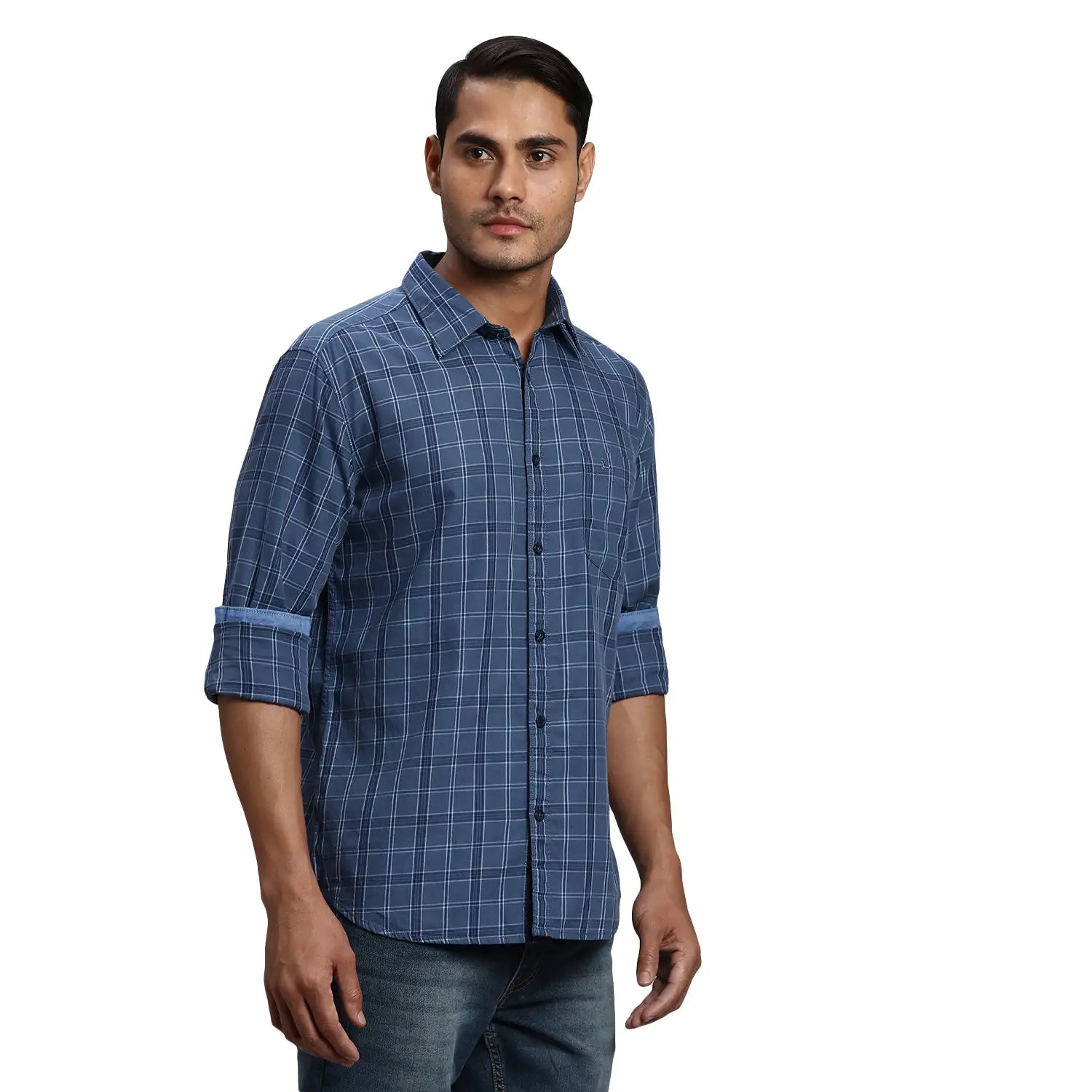 Men Blue Slim Fit Checks Cotton Full Sleeve Shirts