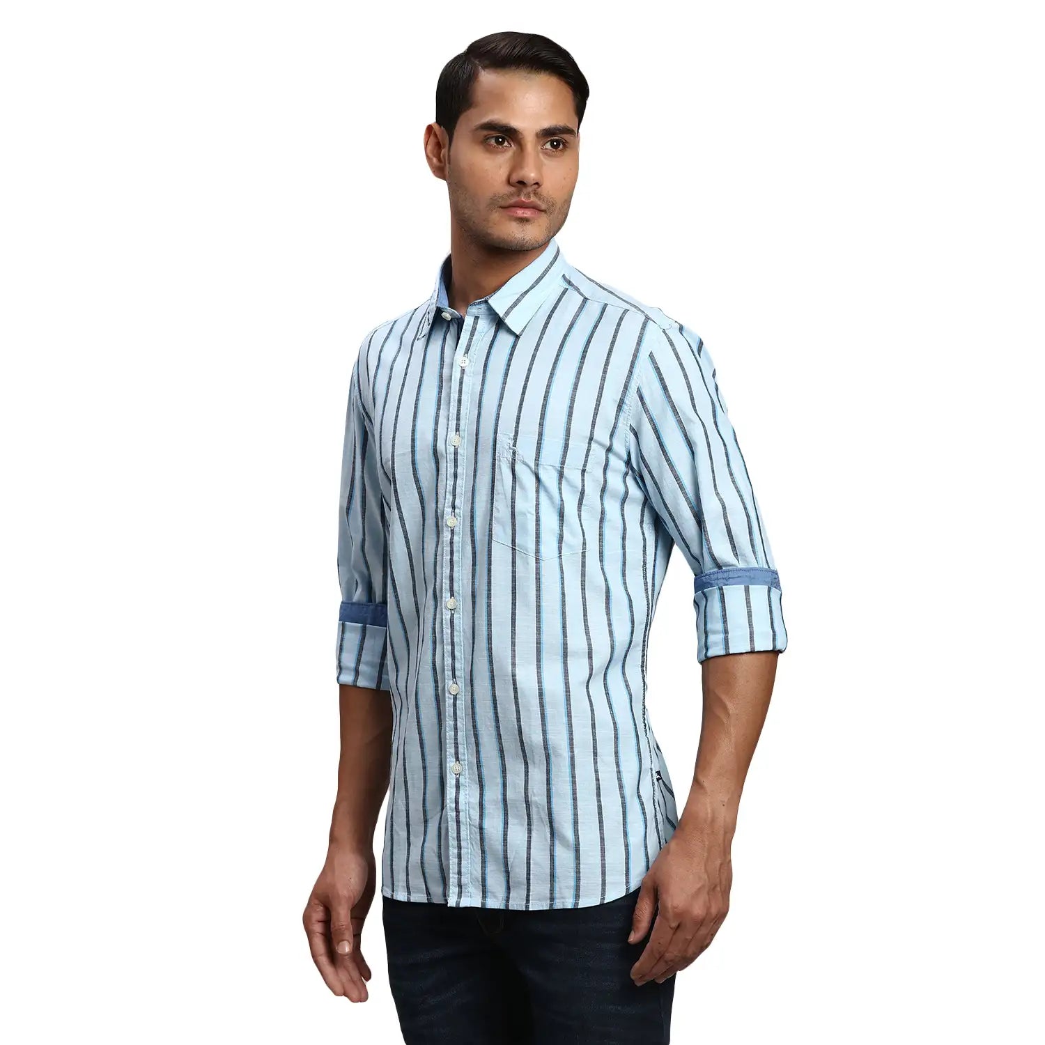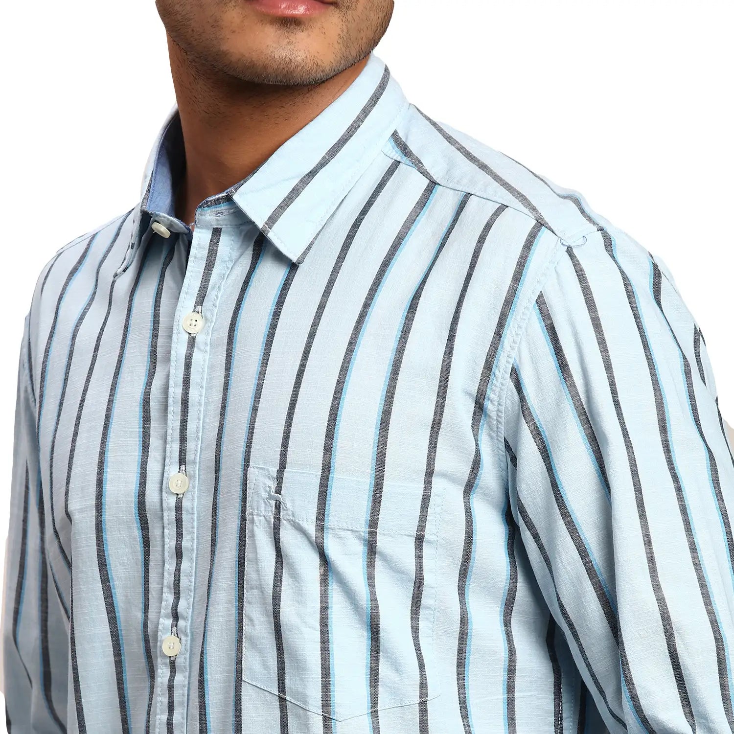 Men Blue Slim Fit Stripe Cotton Full Sleeve Shirts