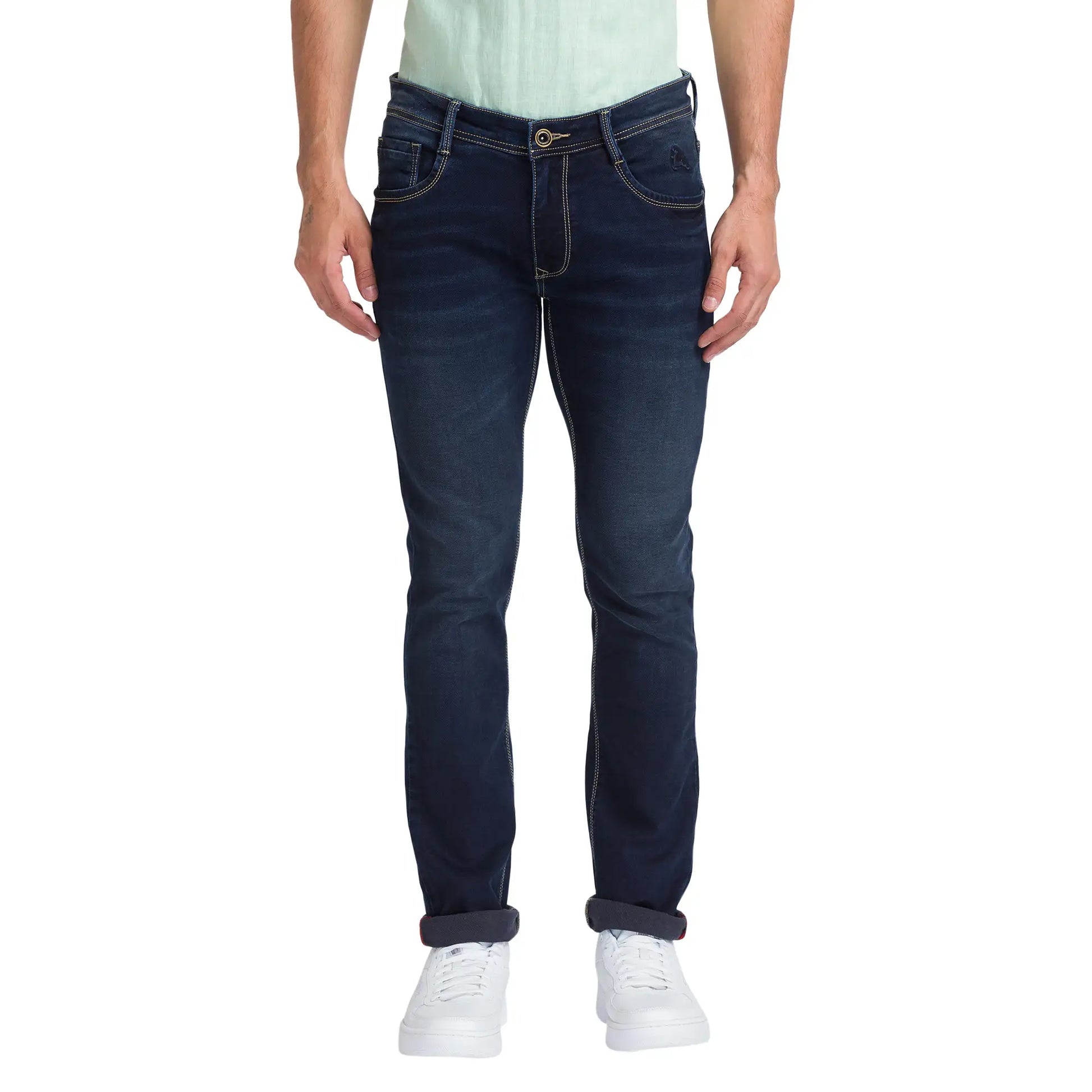 Parx Men Slim Tapered Fit Dobby Cotton Blend Jeans
