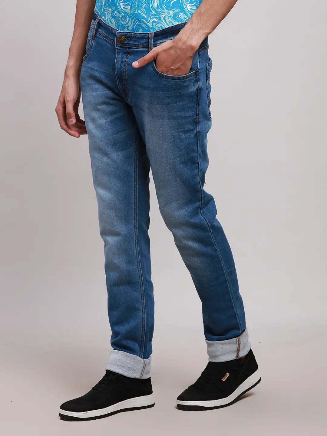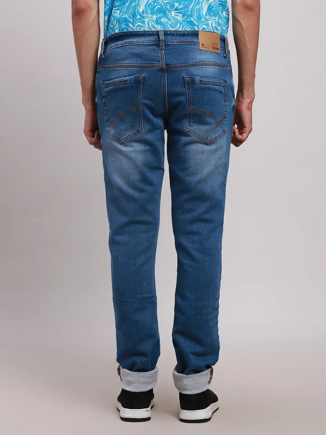 Men Blue Slim Tapered Fit Plain Cotton Blend Jeans