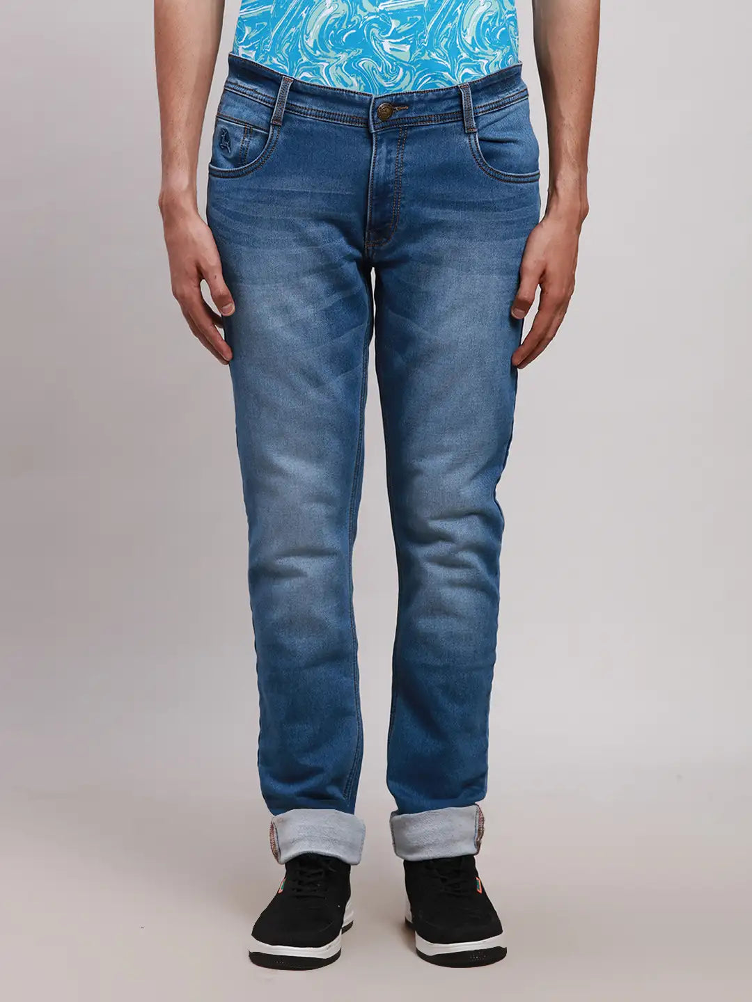 Parx Men Blue Slim Tapered Fit Plain Cotton Blend Jeans