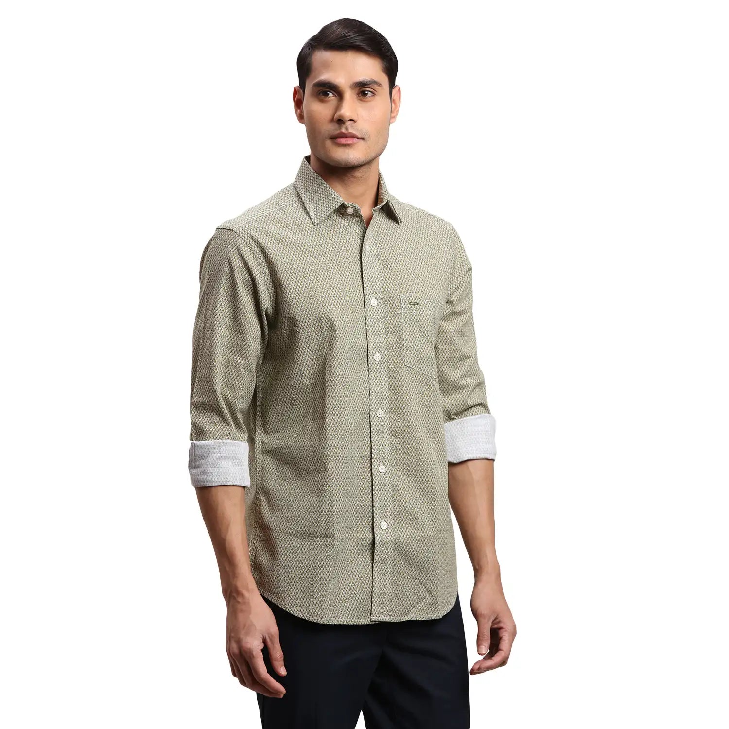 ColorPlus Men Green Regular Fit Print Cotton Full Sleeves Shirts