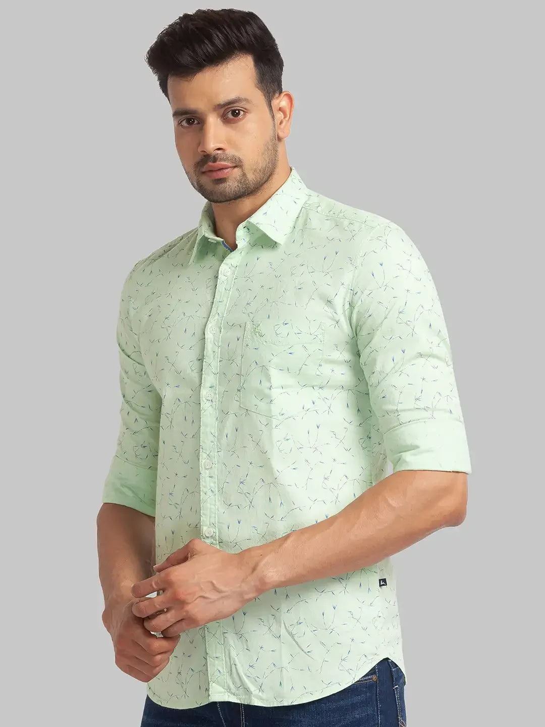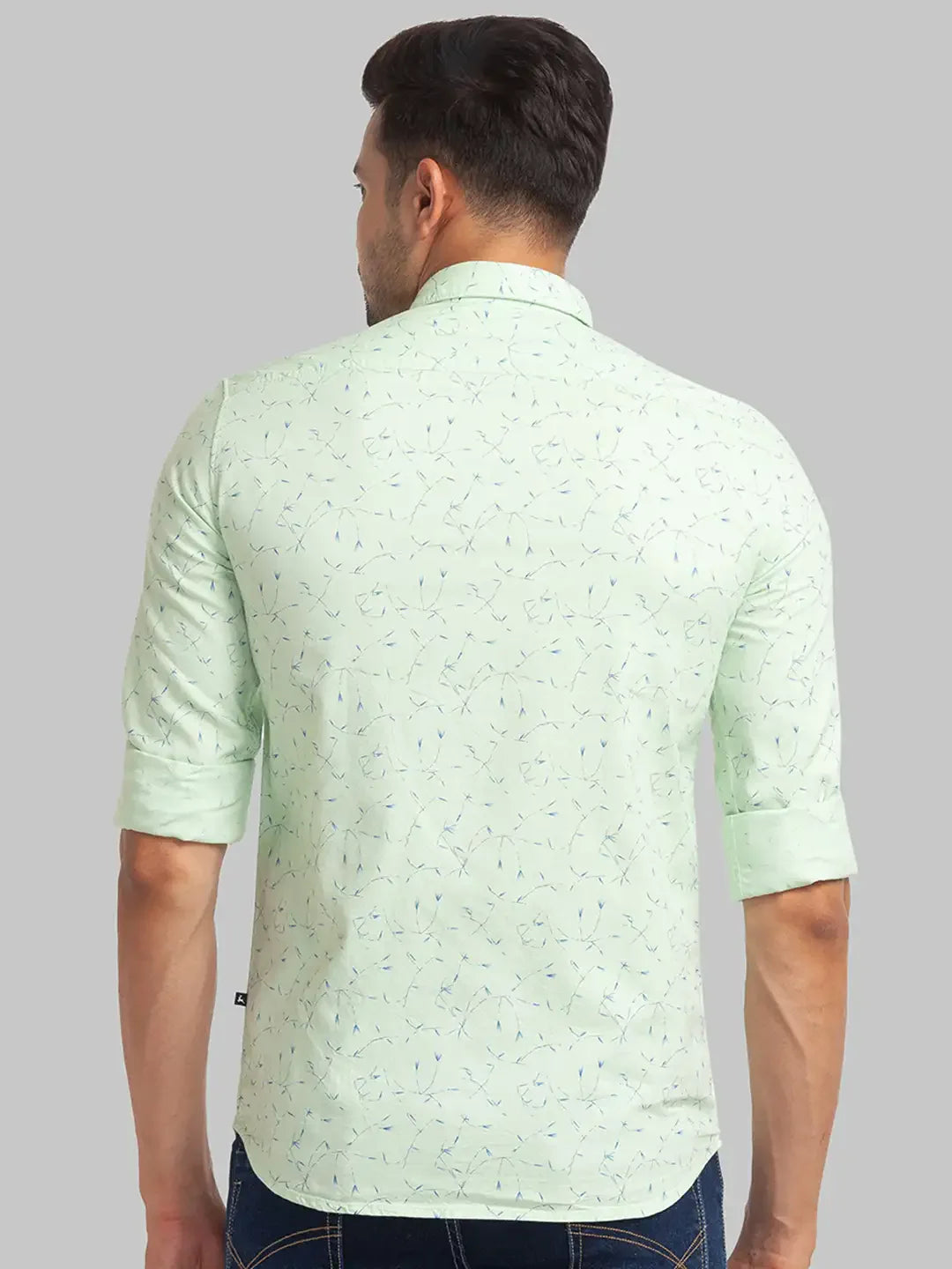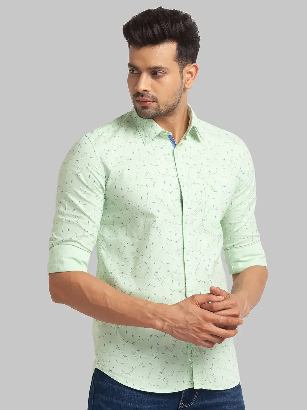 Men Green Slim Fit Print Cotton Full Sleeve Shirts