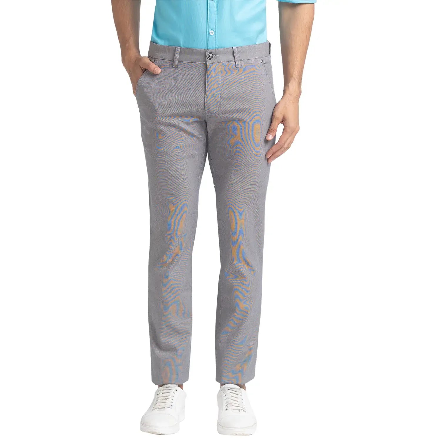 Men Grey Lrt Fit Yarn Dyed Cotton Blend Trouser