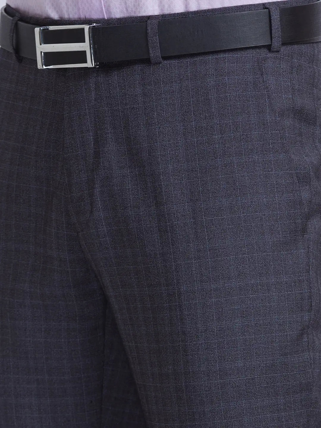 Men Grey Slim Fit Checks Terry Rayon Blend Trouser