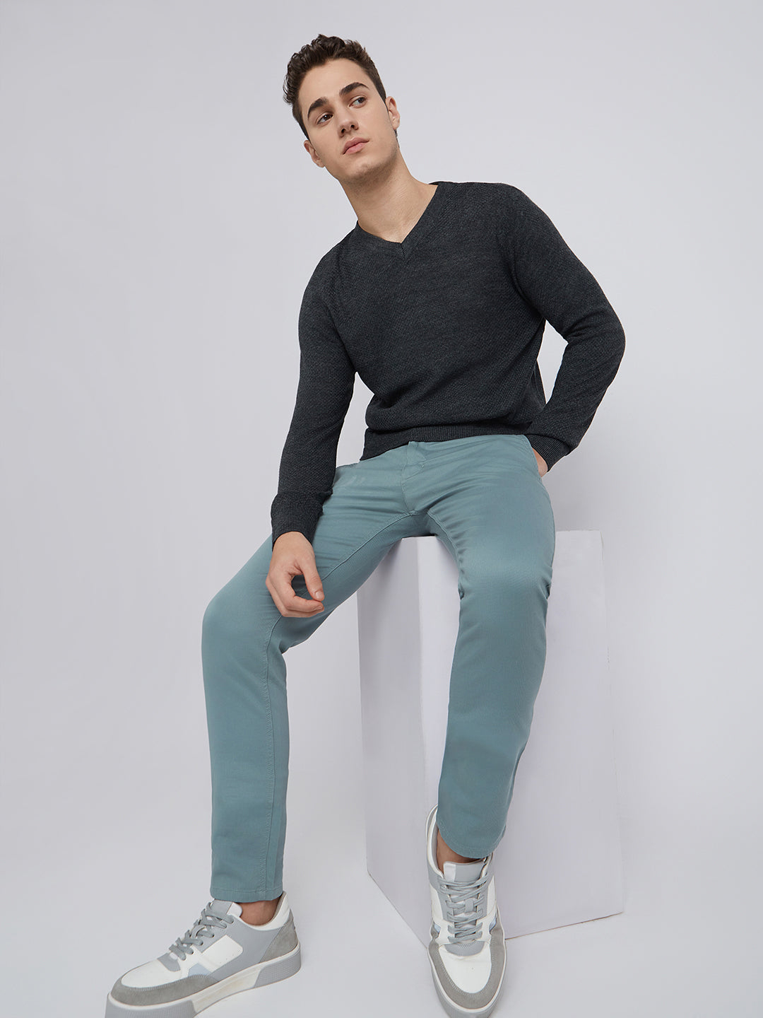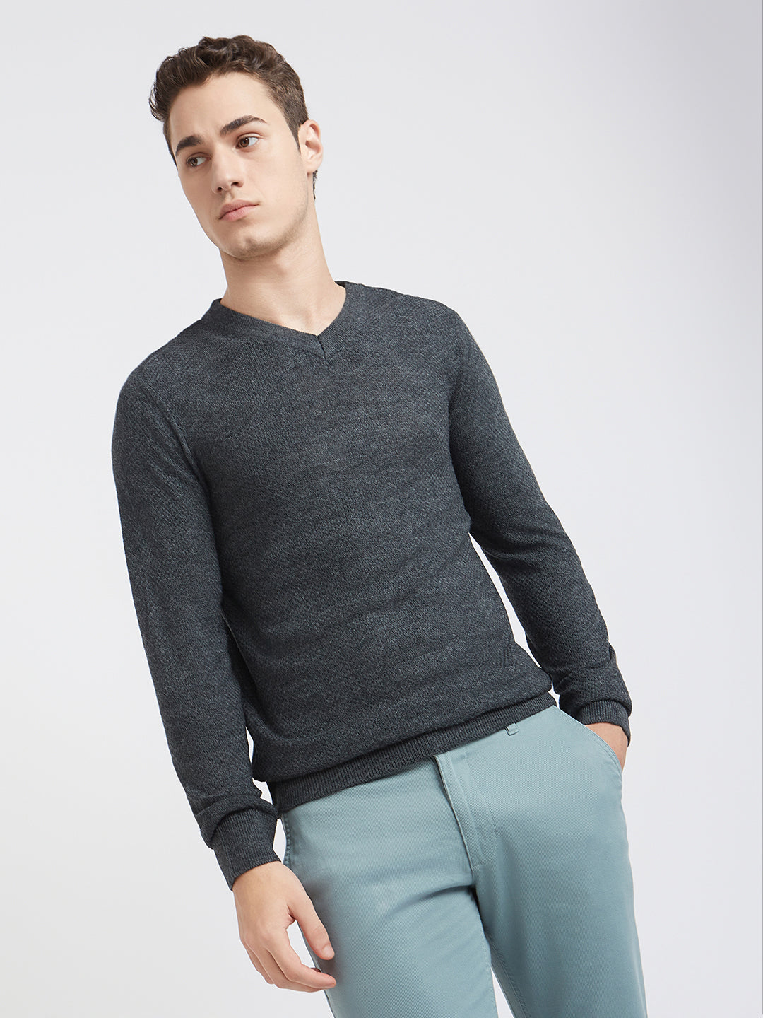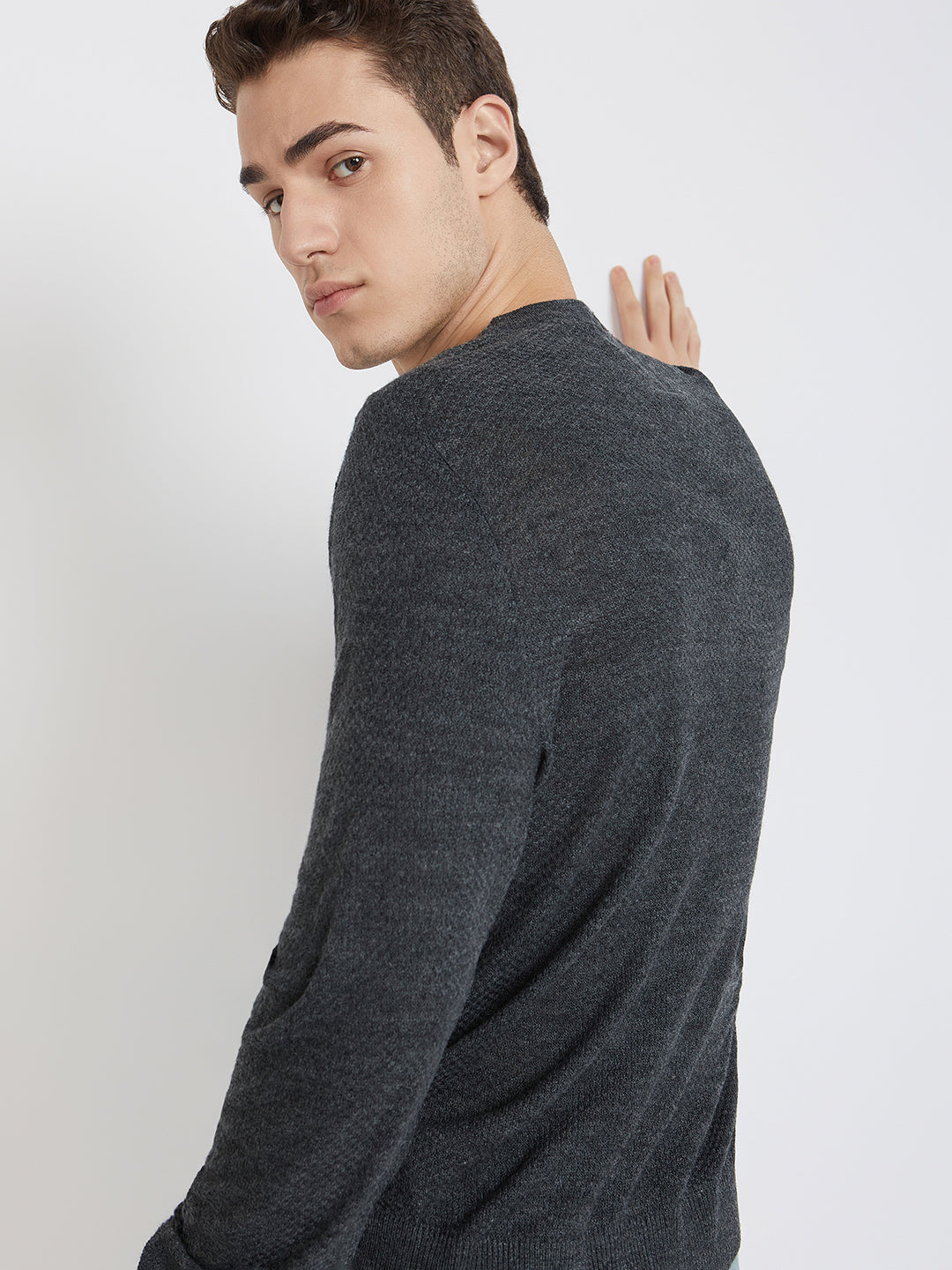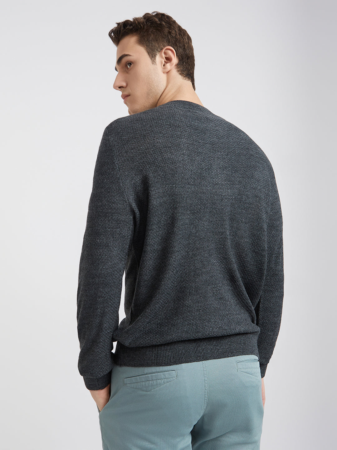 Men Grey Structure Acrylic Full Sleeve Sweaters