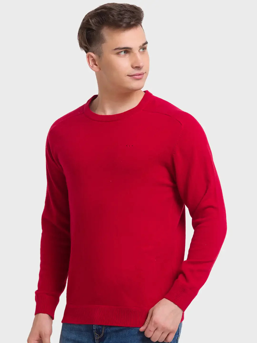 ColorPlus Men Tailored Fit Solid Wool Blend Full Sleeve Sweaters