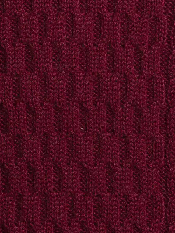 Men Red Tailored Fit Structure Acrylic Merino Blend Full Sleeve V Neck Collar Sweaters