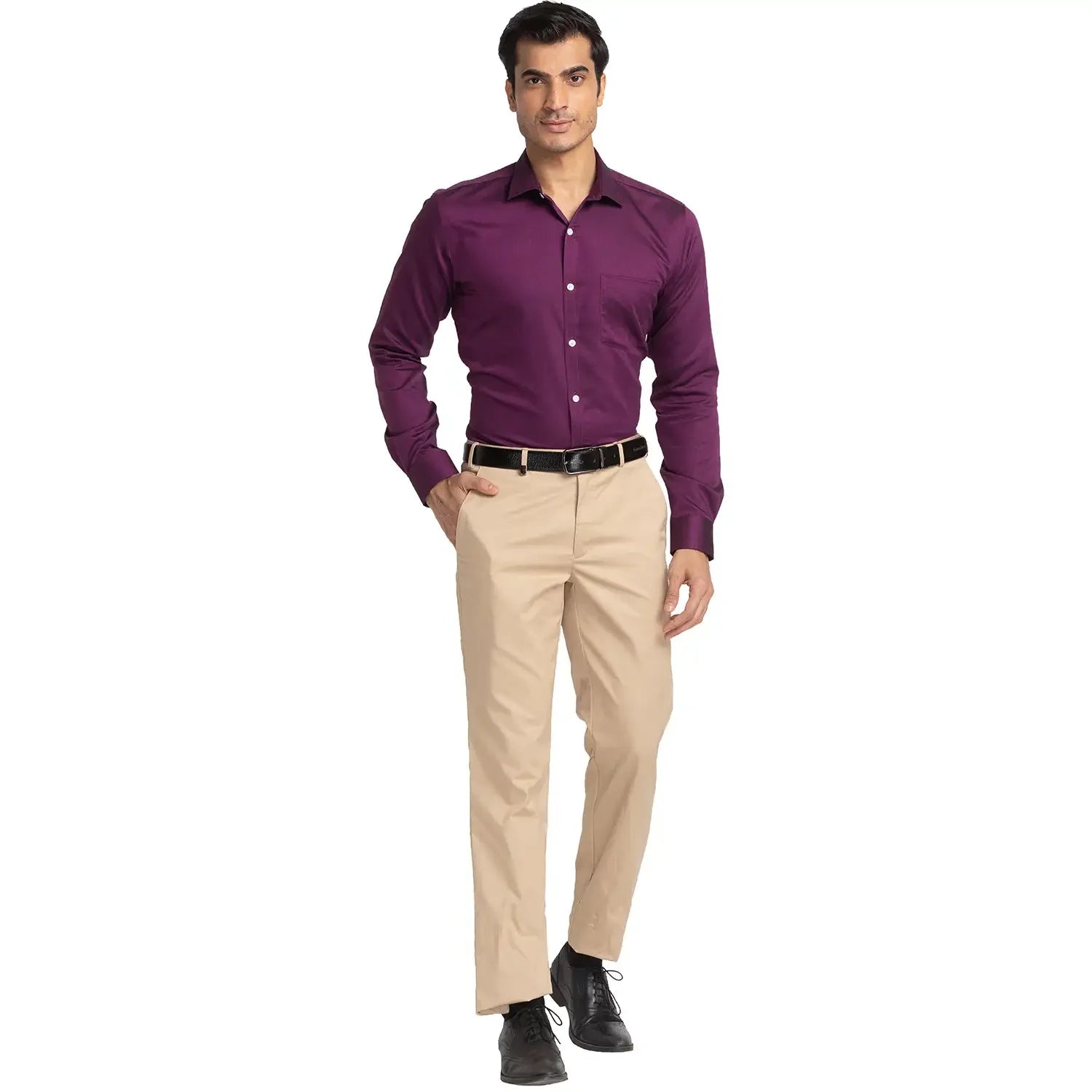 Men Violet Slim Fit Structure Cotton Cut Away Collar Shirts