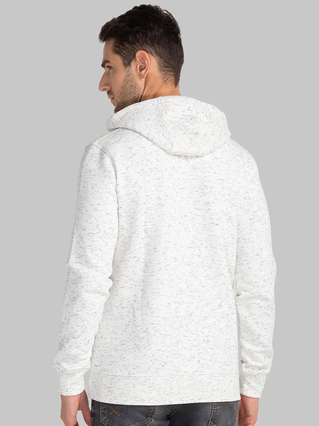 Men White Regular Fit Print Cotton Polyester Blend Sweatshirts
