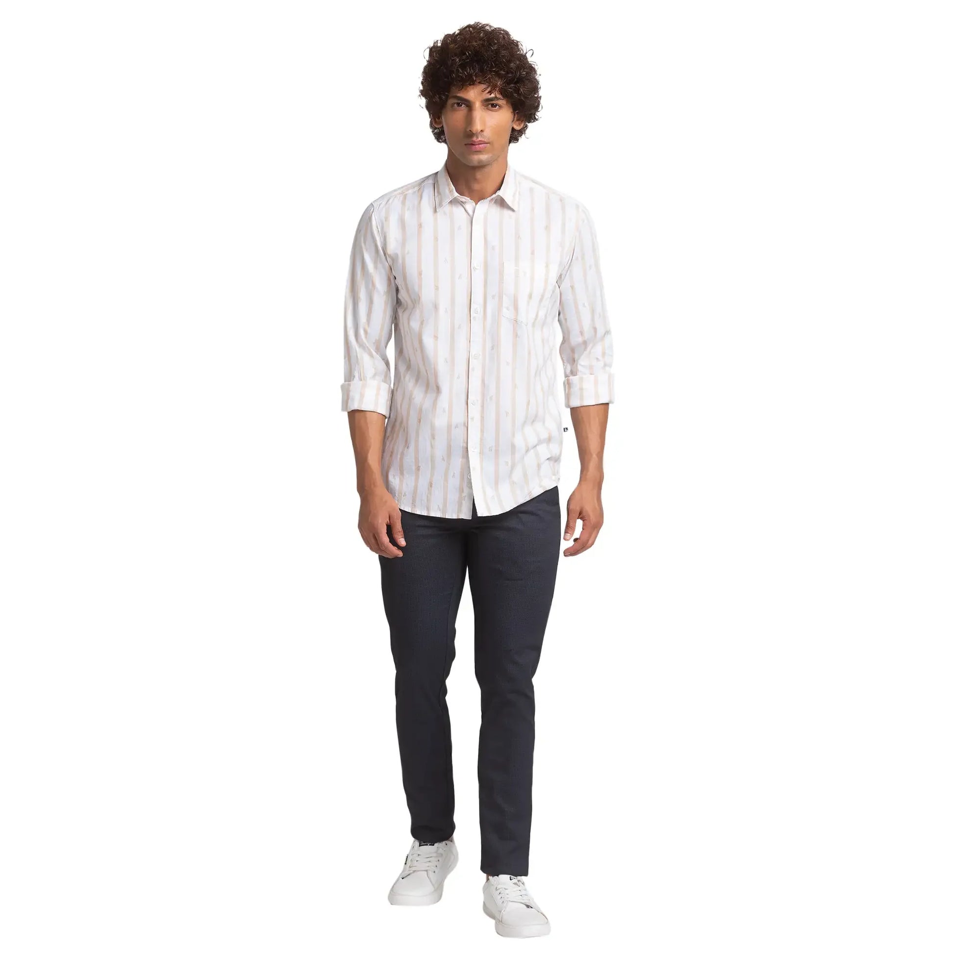 Men White Slim Fit Print Cotton Full Sleeve Shirts