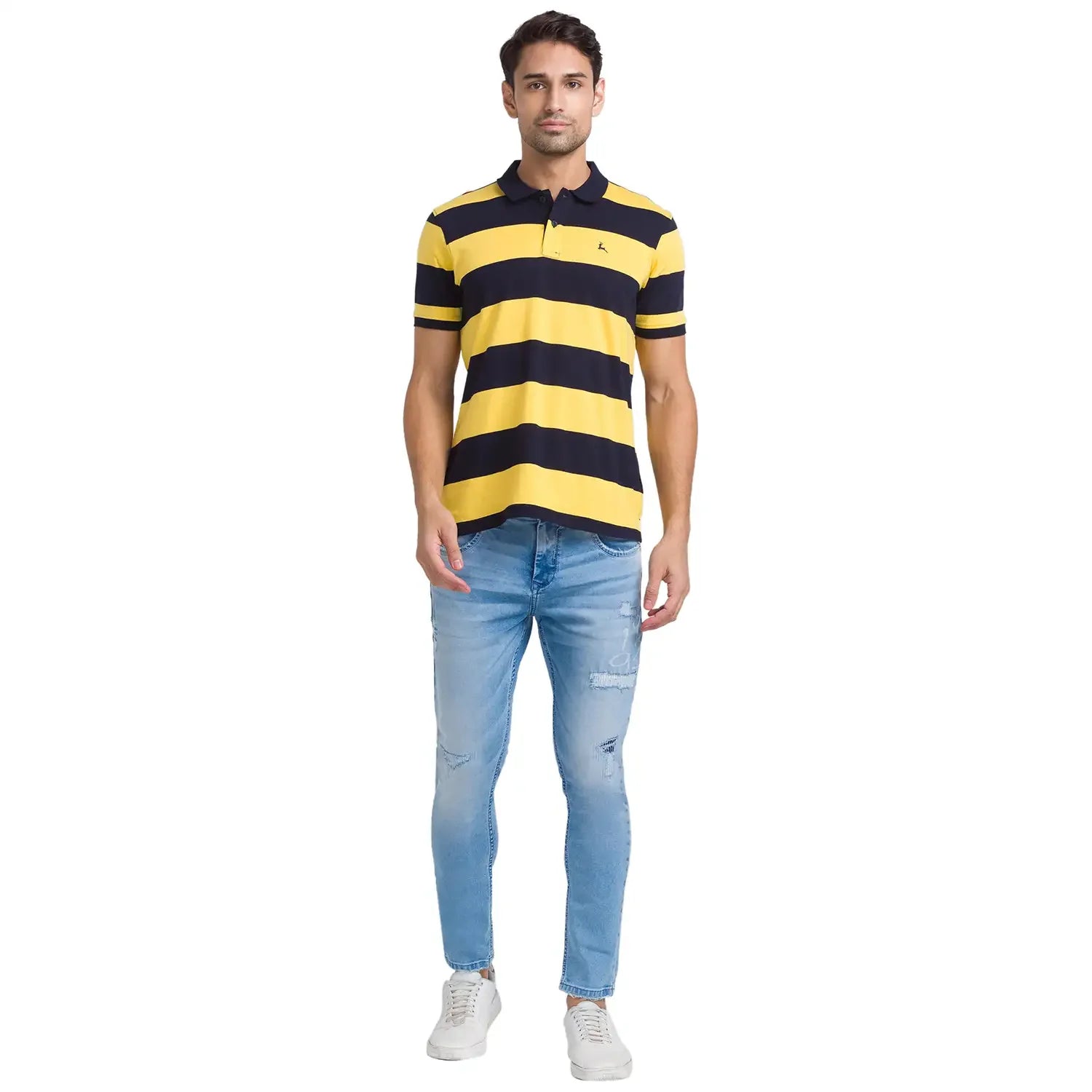 Men Yellow Regular Fit Yarn Dyed Cotton Round Neck Collar Polo T-Shirt