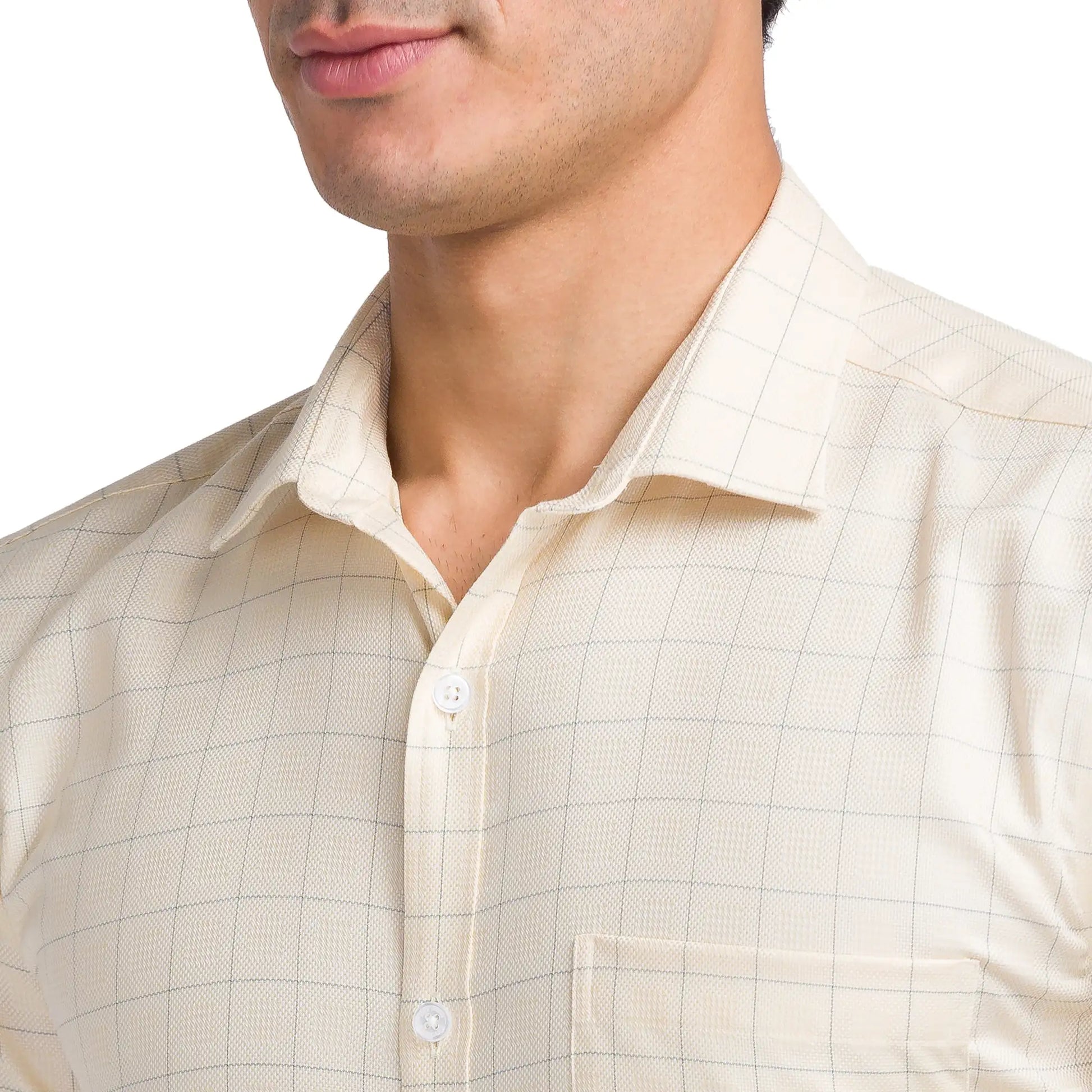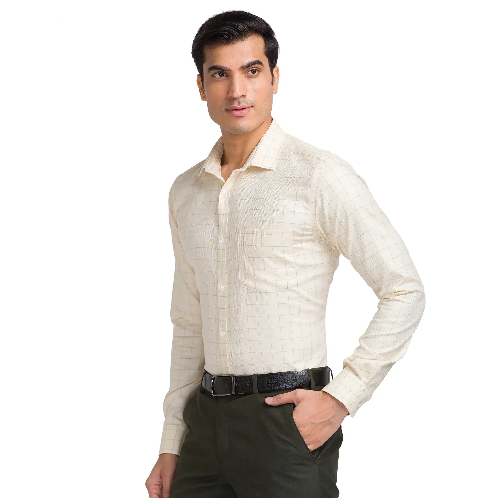Men Yellow Slim Fit Checks Cotton Cut Away Collar Shirts