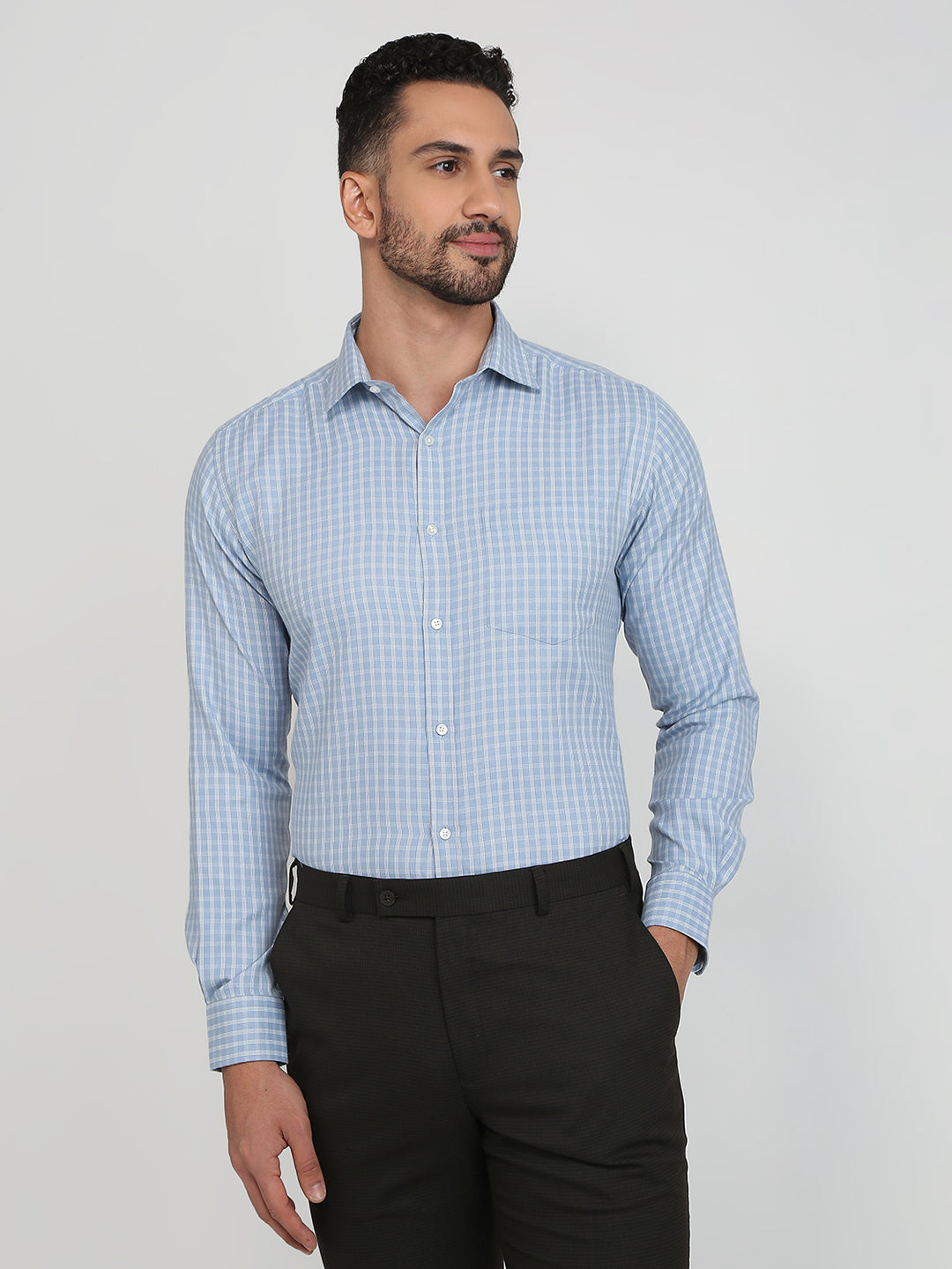 Men Blue Checks Slim Fit Cotton Blend Formal Shirt
