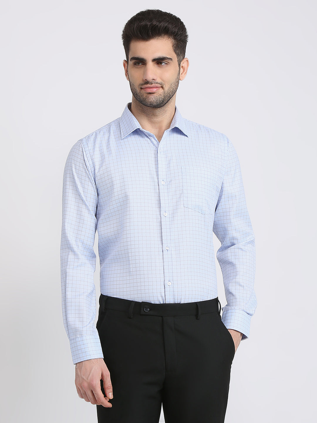 Park Avenue Men Blue Checks Slim Fit Cotton Blend Formal Shirt