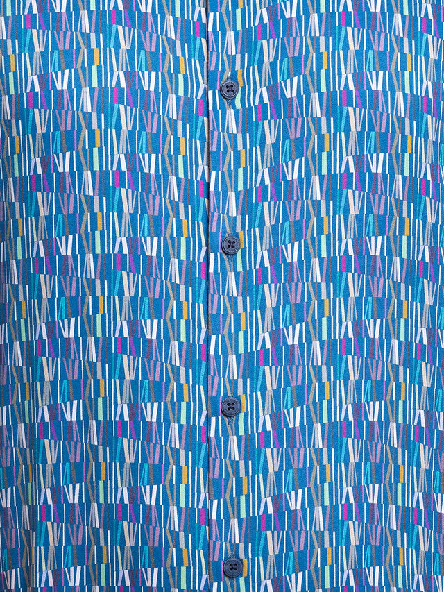 Men Blue Printed Slim Fit Full Sleeve Cut Away Collar Shirt