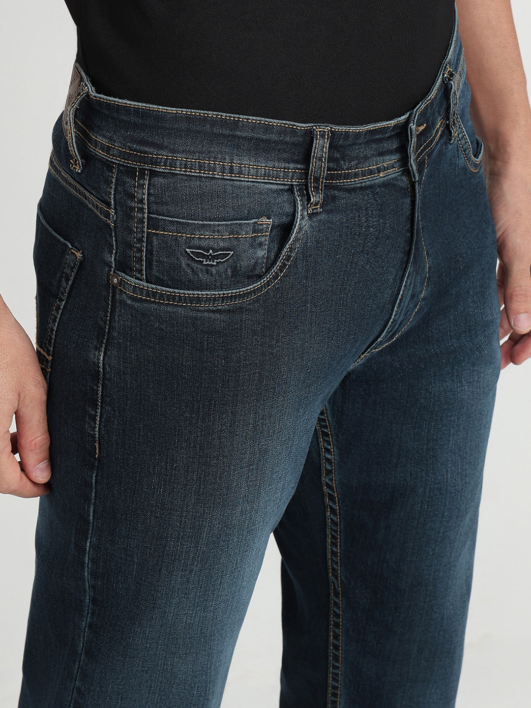 Park Avenue Men Blue Solid Slim Fit Cotton Blend Jeans