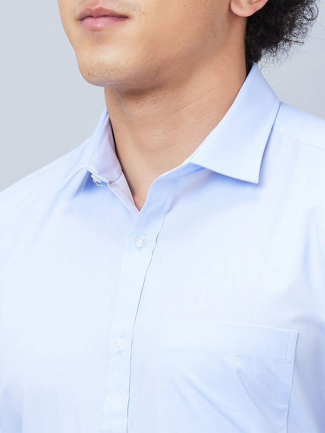 Men Blue Solid Slim Fit Full Sleeve Semi Cut Away Collar Shirt