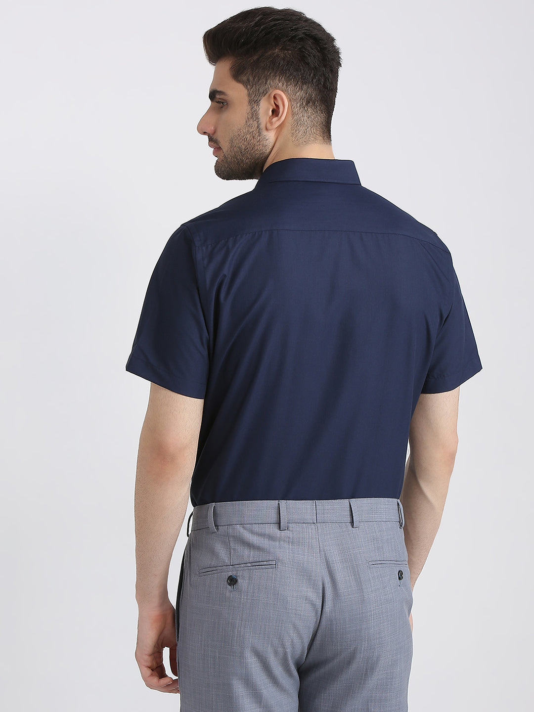 Men Blue Structure Regular Fit Polyester Blend Formal Shirt