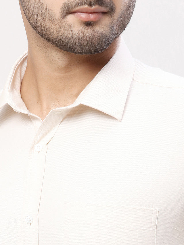 Men Brown Self Design Slim Fit Polyester Blend Formal Shirt